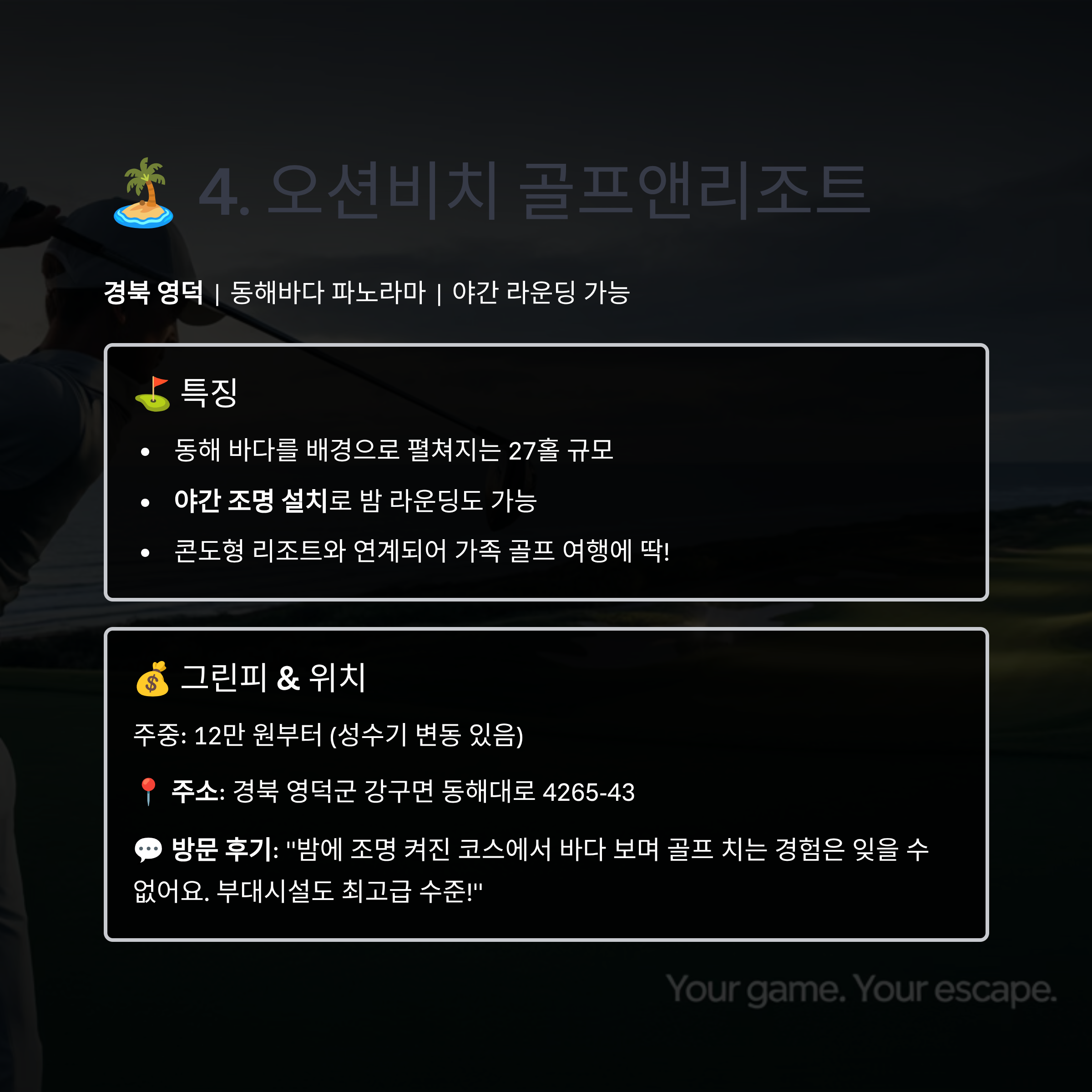 그건 단순한 라운딩이 아닌, 기억에 남을 “작은 여행”이 될 거예요.
