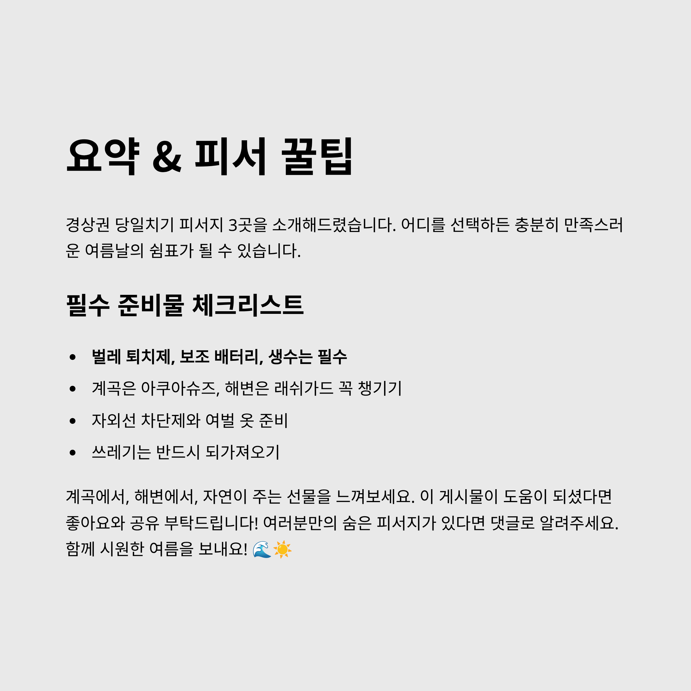 요약 & 피서 꿀팁