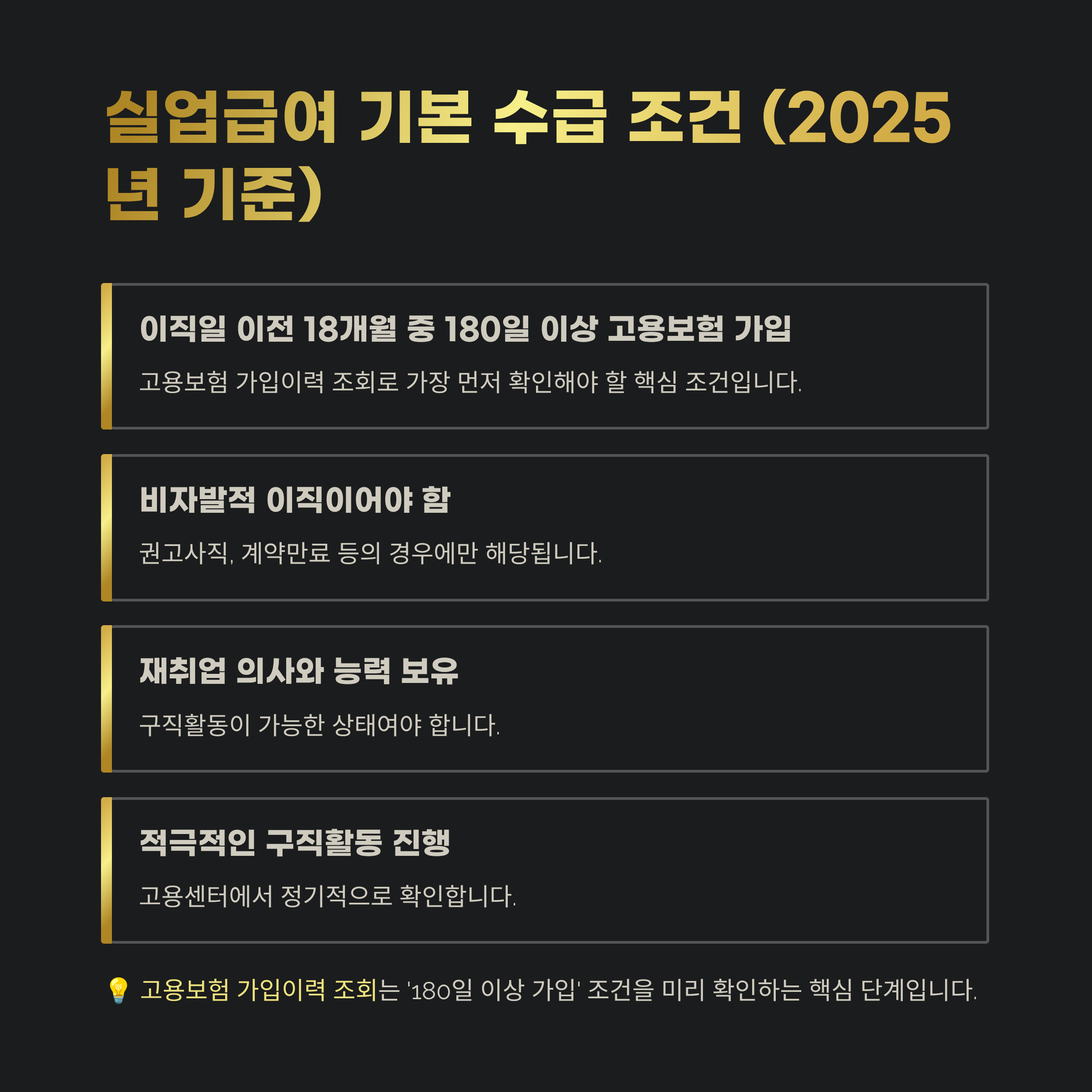 📌 실업급여 기본 수급 조건 (2025년 기준)