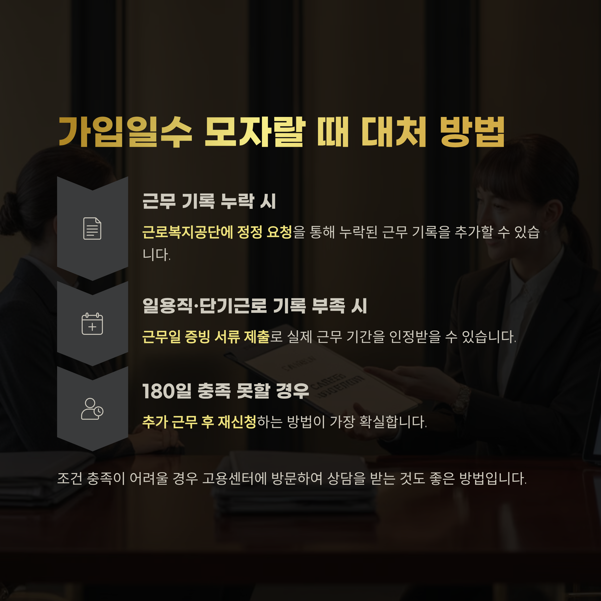 - 일용직·단기근로 기록이 적을 때 → 근무일 증빙 서류 제출로 보완 가능