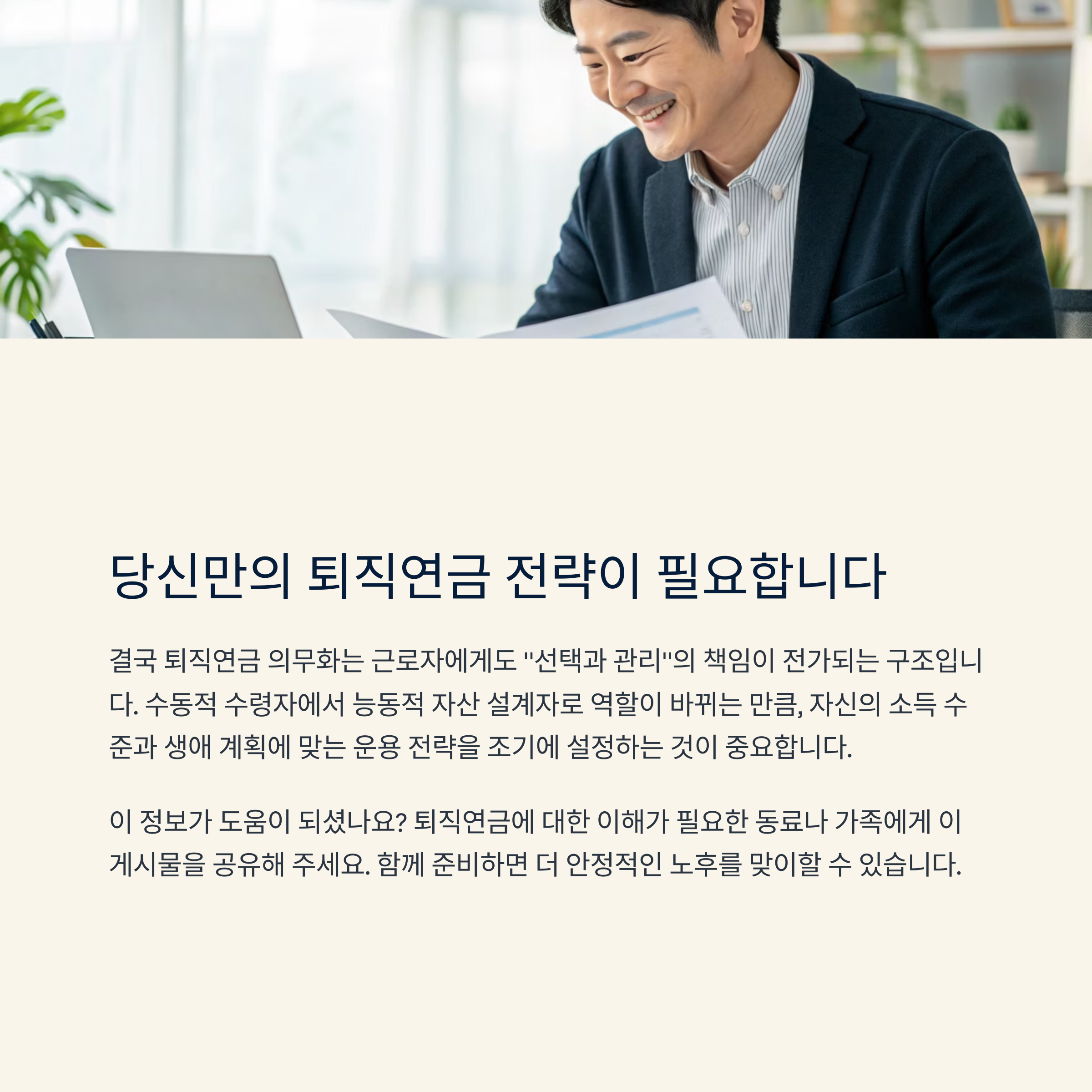결국 퇴직연금 의무화는 근로자에게도 “선택과 관리”의 책임이
