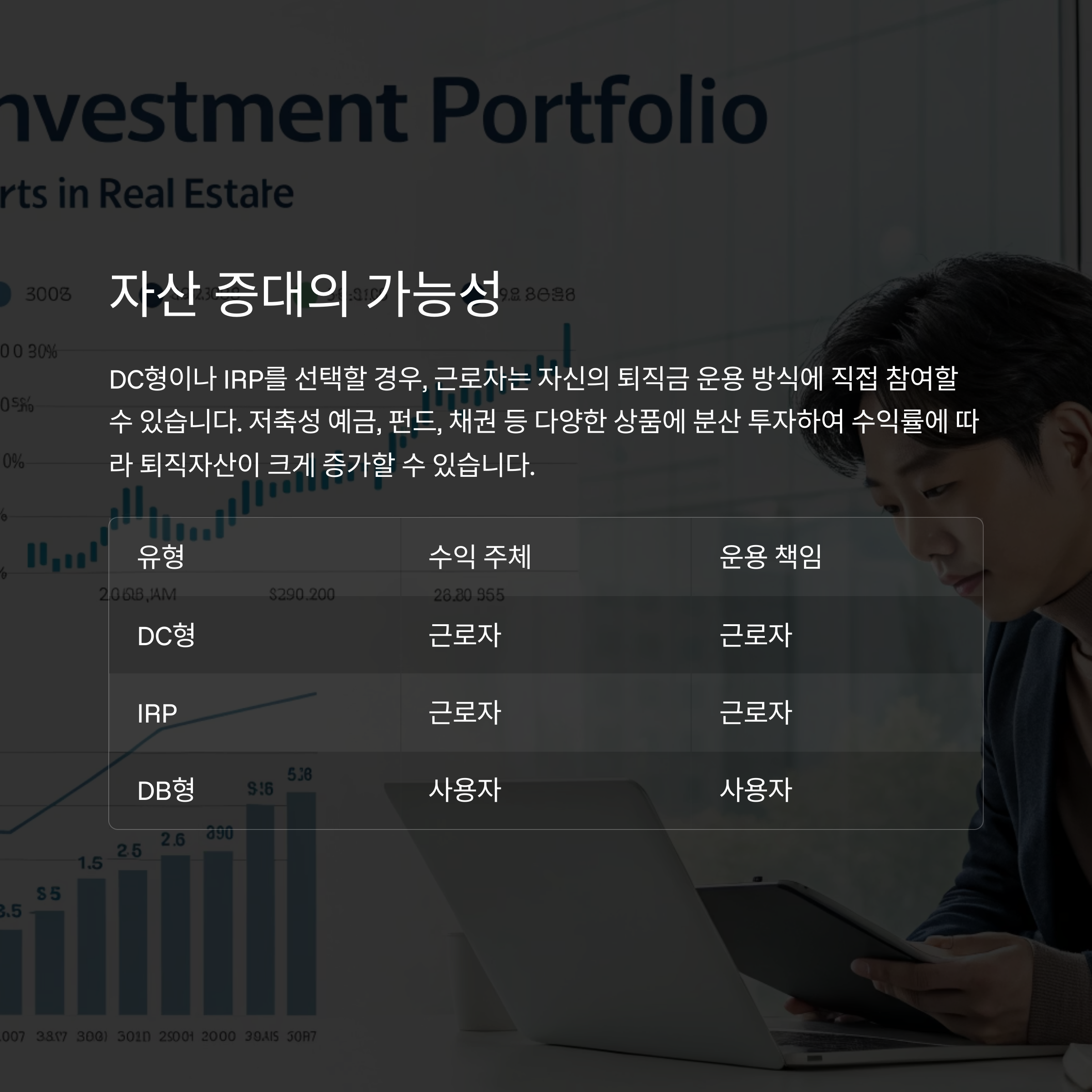 | 원금 손실 가능성 | 고위험 상품 선택 시 퇴직금 손실 가능성 |