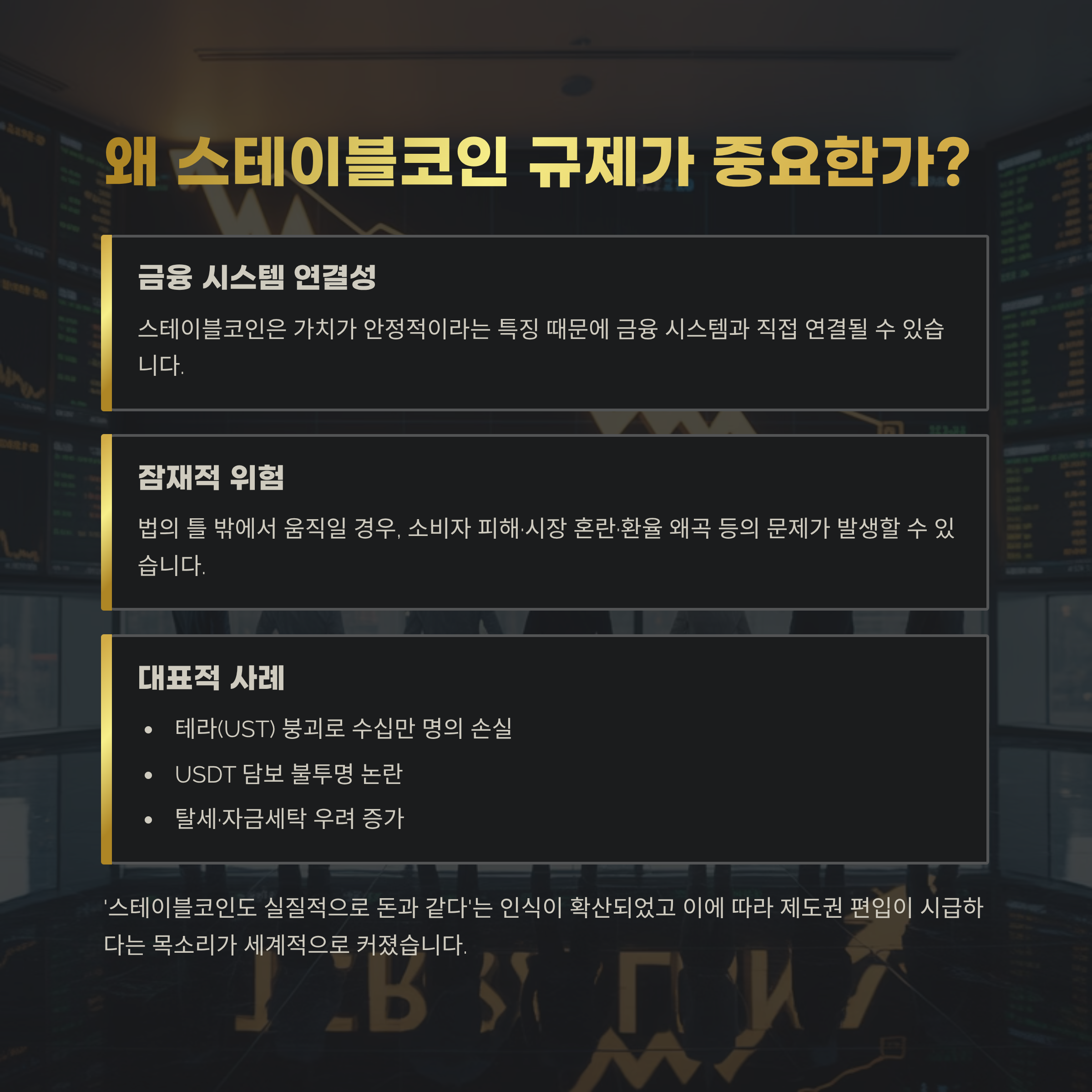 | 주요 규제 대상 | USDT, USDC, DAI 등 민간 발행 스테이블코인 |