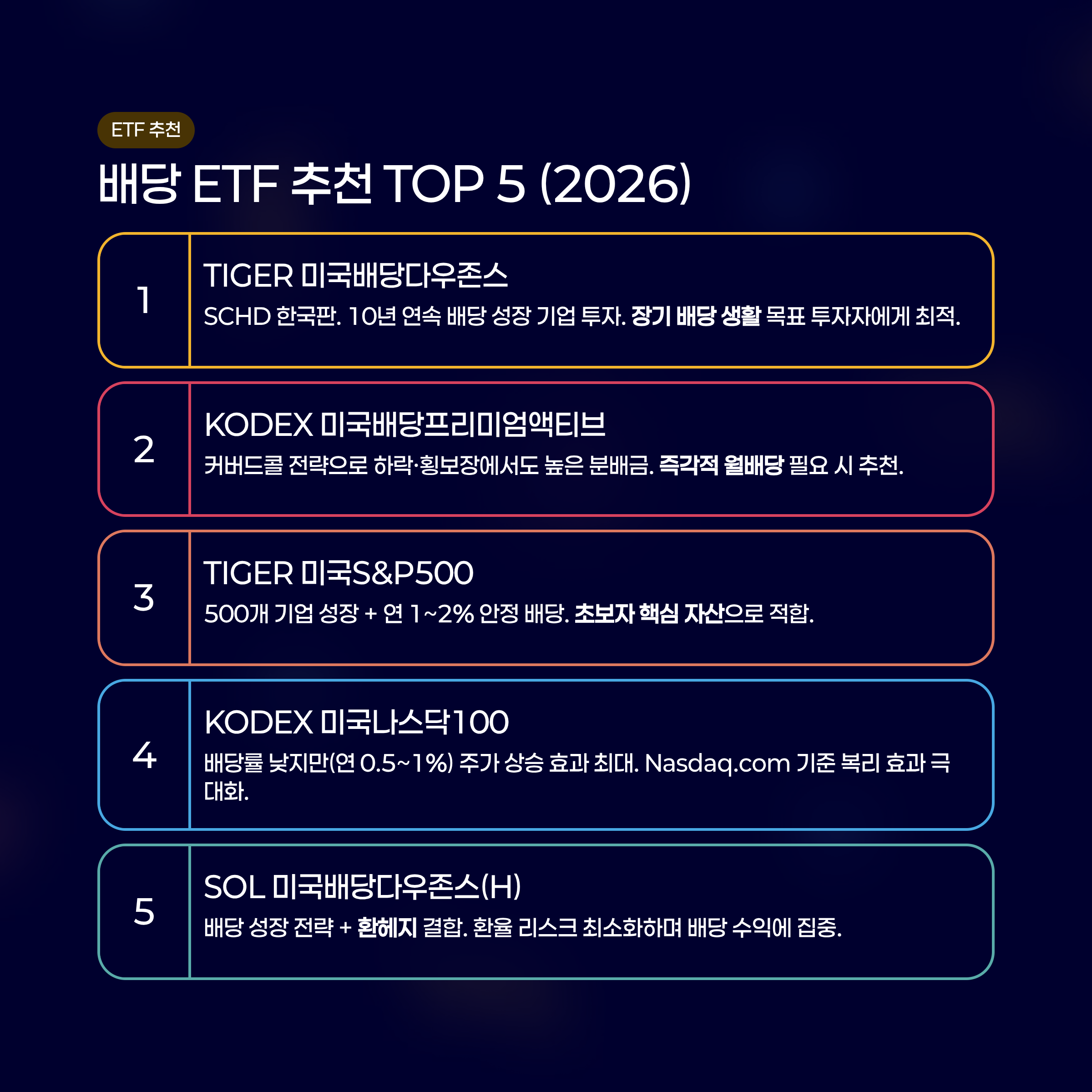 - 배당 ETF 추천 TOP 5: 2026년 필승 종목 분석
