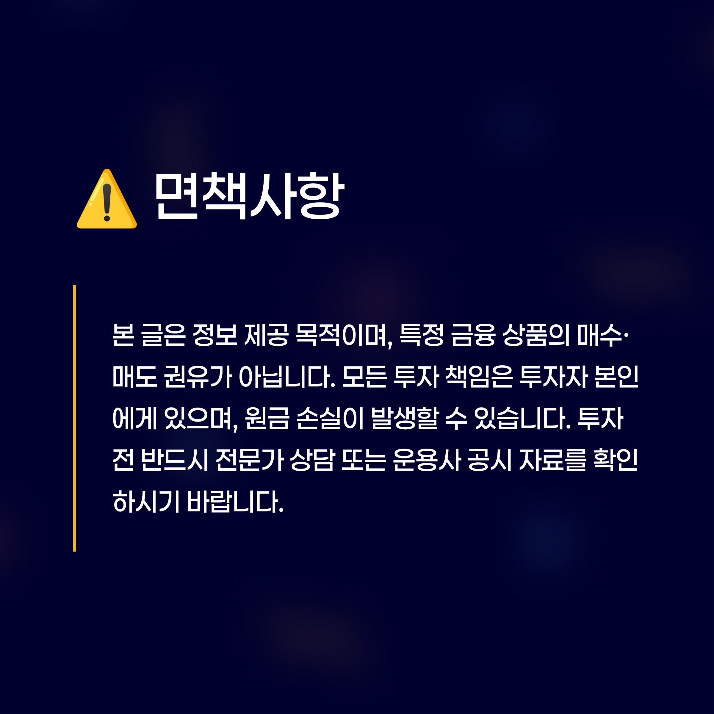 본 글은 정보 제공을 목적으로 하며, 특정 금융 상품에 대한 매수 또는 매도 권유가 아닙니다. 모든 투자의 책임은 투자자 본인에게 있으며, 시장 상황에 따라 원금 손실이 발생할 수 있습니다. 투자 전 반드시 전문가와 상담하거나 운용사 공시 자료를 확인하시기 바랍니다.