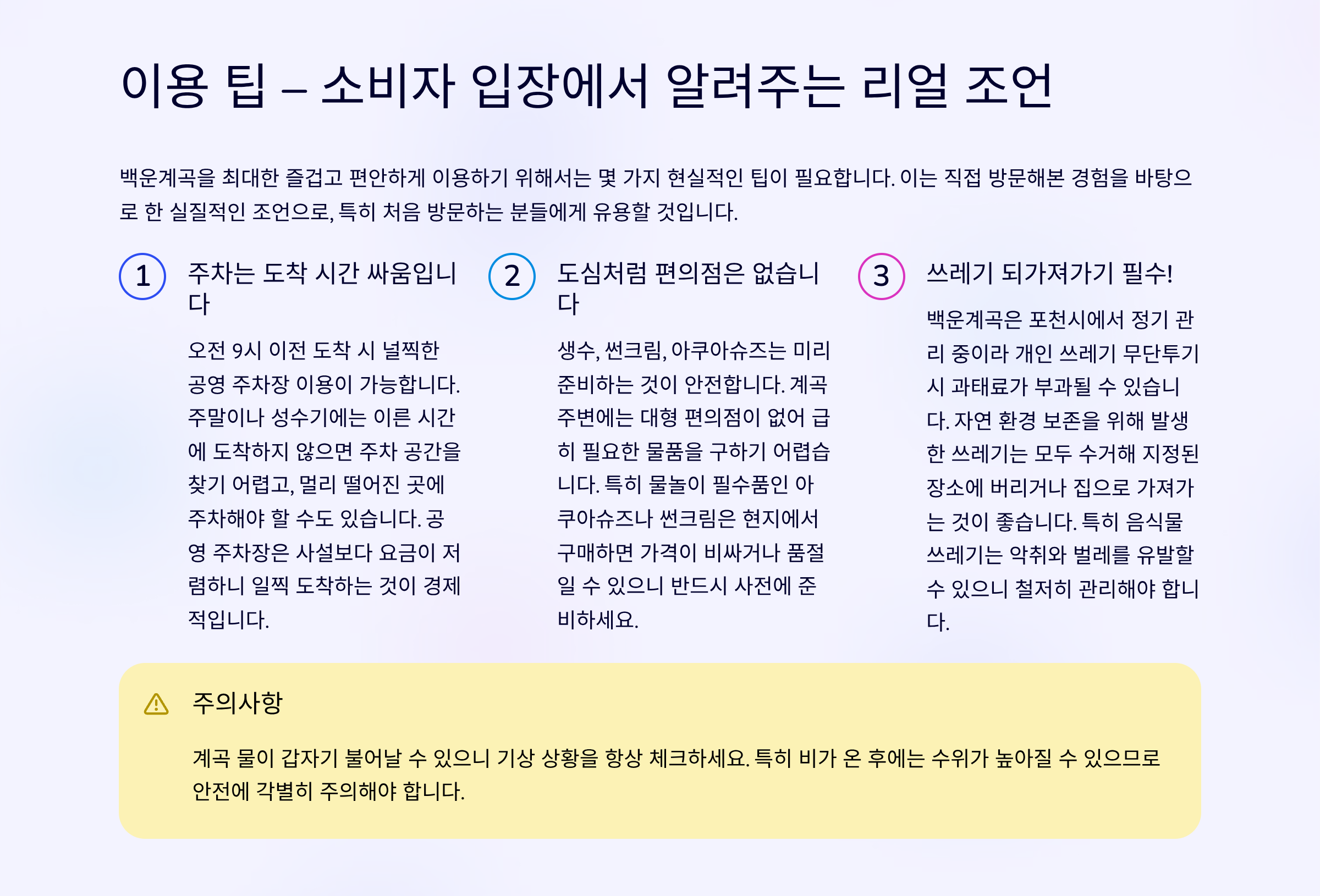 백운계곡의 위치, 구간별 특징, 주차 팁, 먹거리, 준비물까지