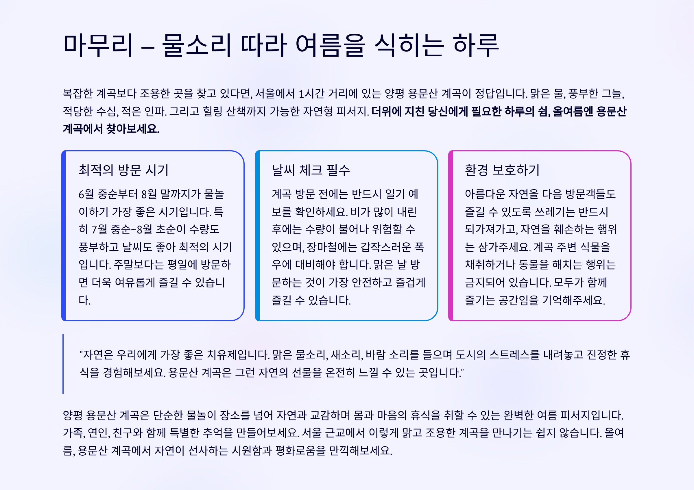 마무리 – 물소리 따라 여름을 식히는 하루