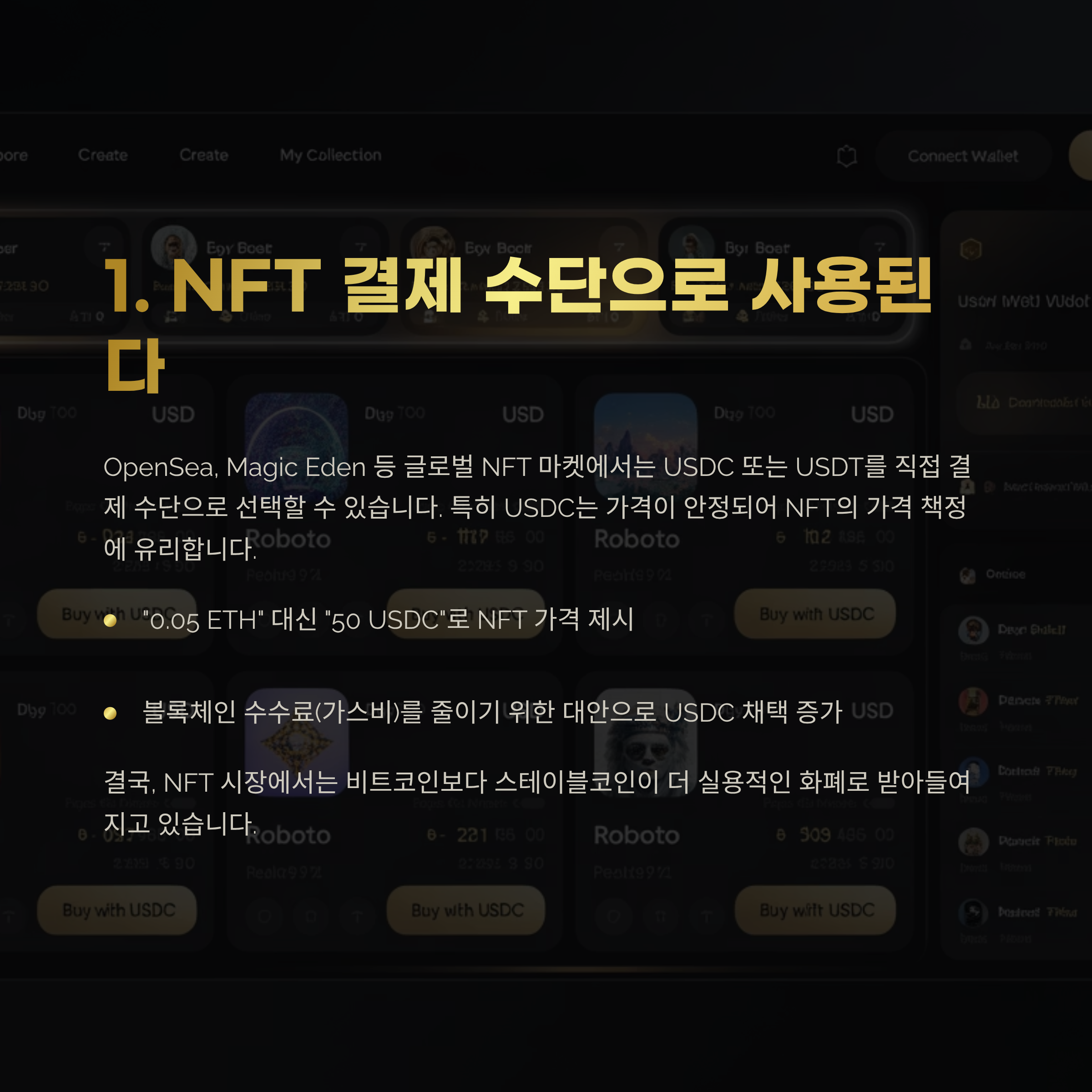 – “0.05 ETH” 대신 “50 USDC”로 NFT 가격 제시