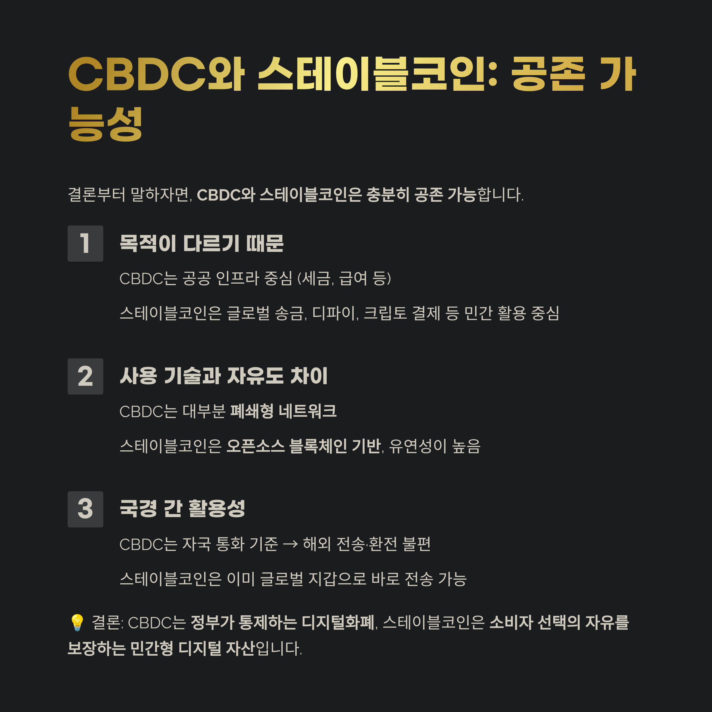 CBDC와 스테이블코인은 충분히 공존 가능합니다.