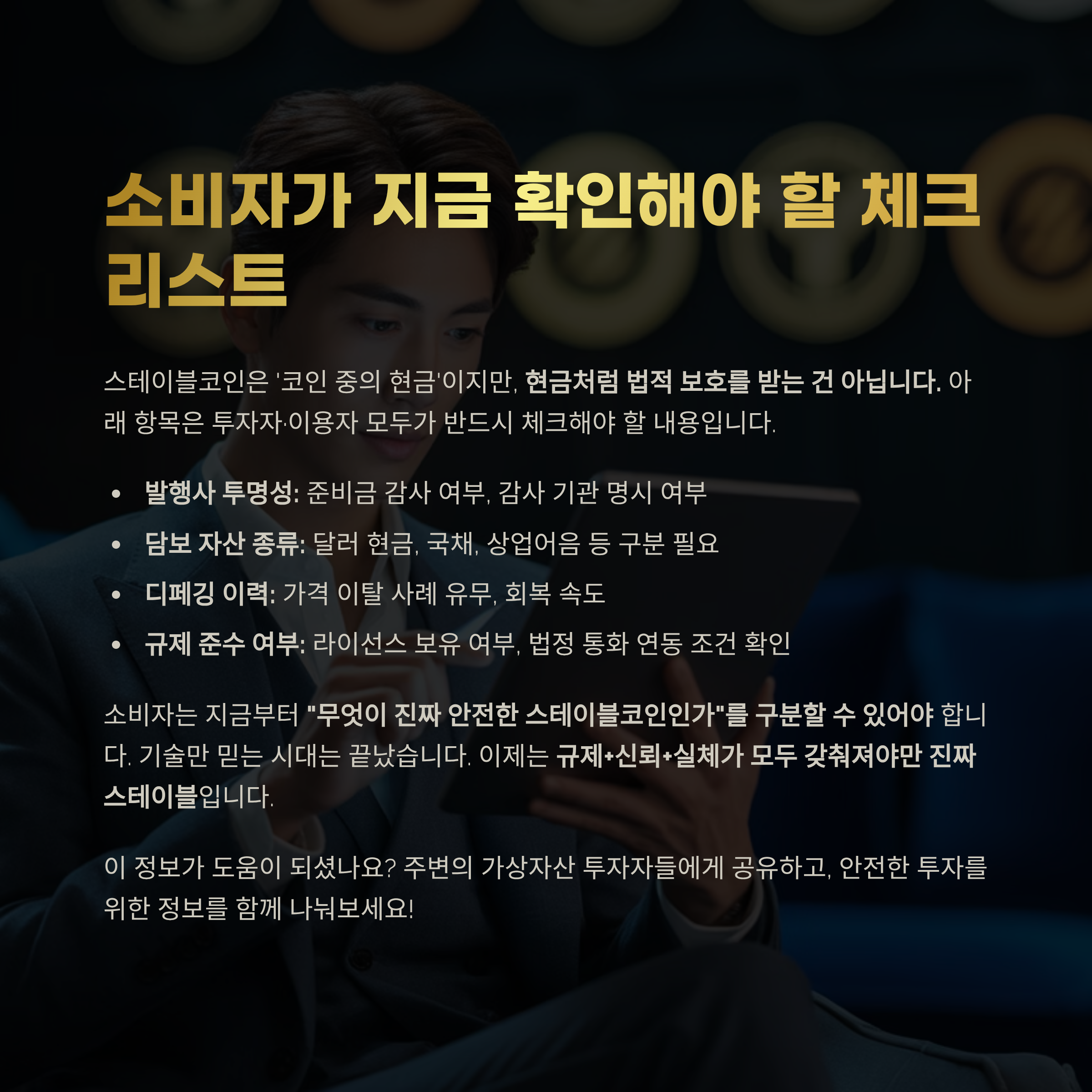 기술만 믿는 시대는 끝났습니다. 이제는 규제+신뢰+실체가 모두 갖춰져야만 진짜 스테이블입니다.