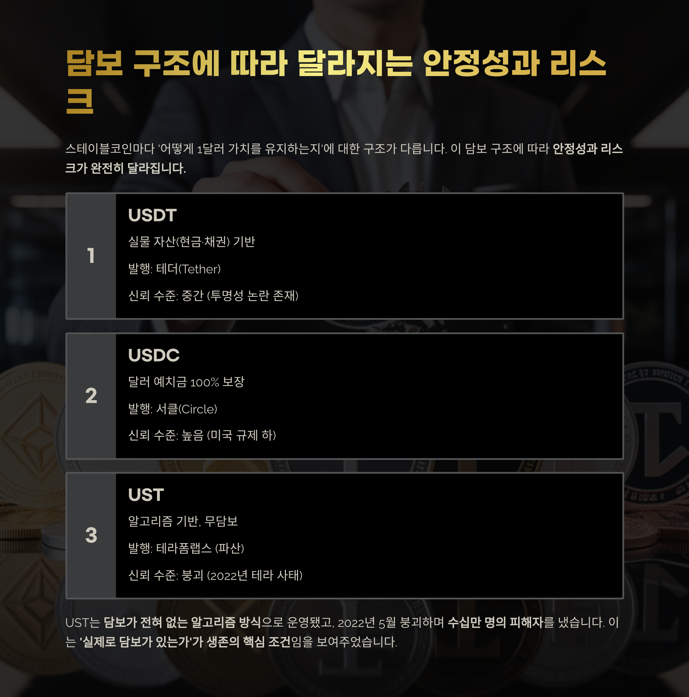 “무엇이 진짜 안전한 스테이블코인인가”를 구분할 수 있어야 합니다.