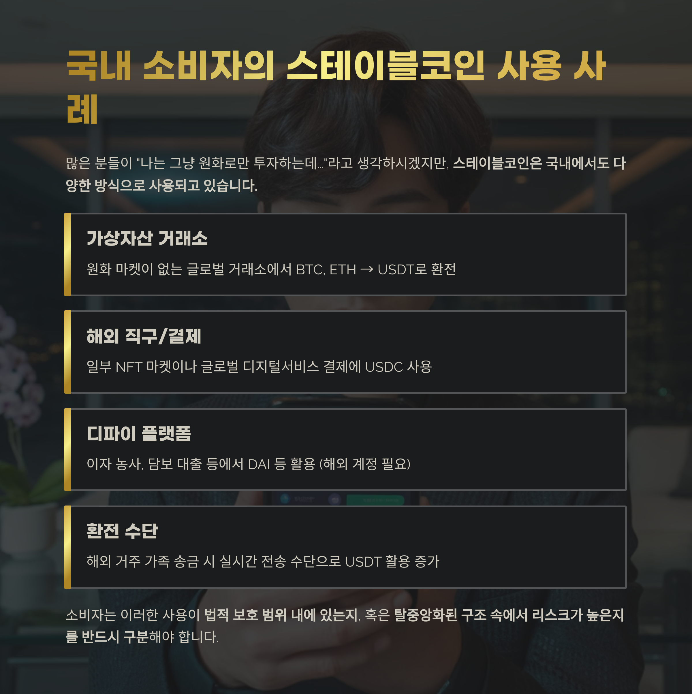 국내 소비자는 어디에서 스테이블코인을 사용하나?