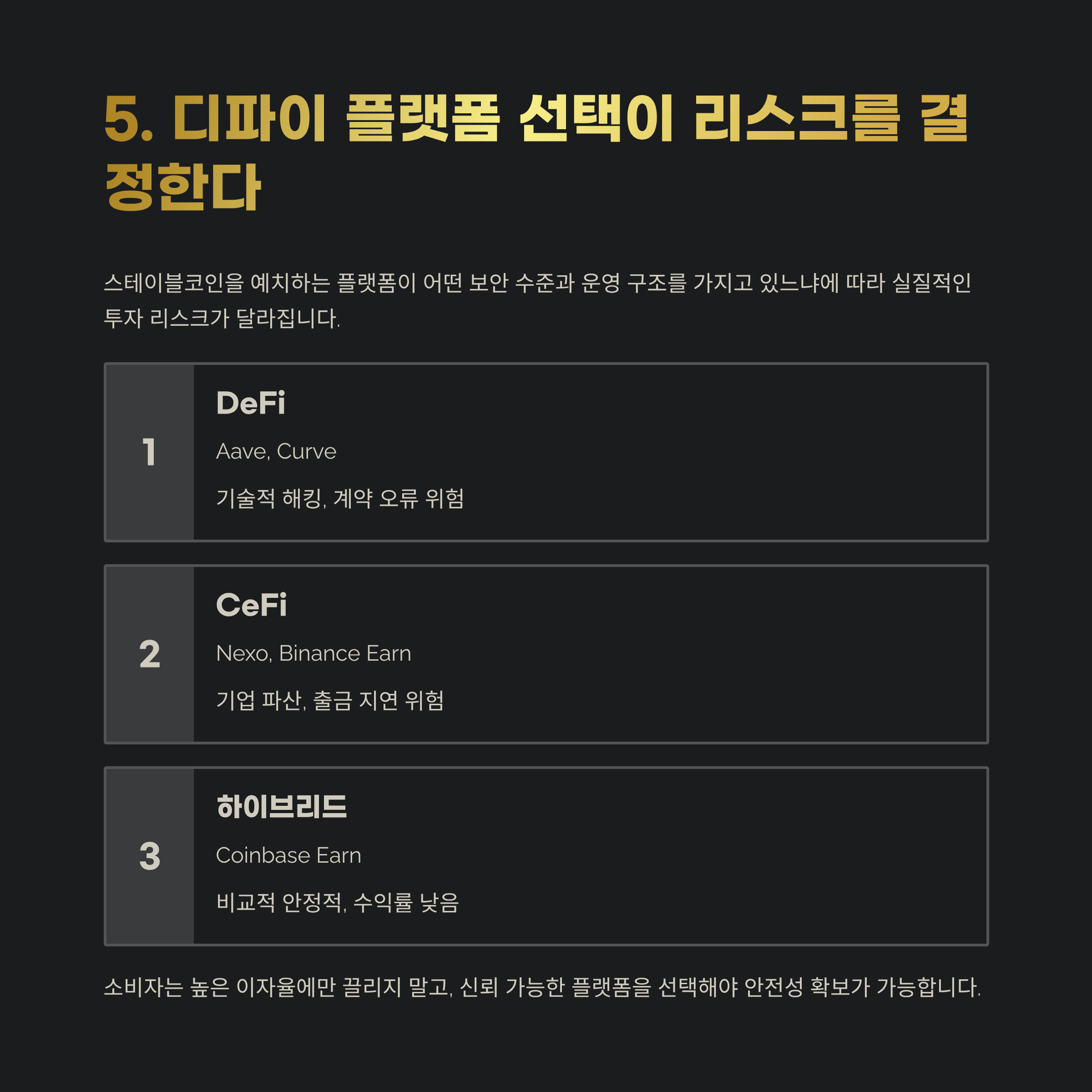 5. 디파이 플랫폼 선택이 리스크를 결정한다