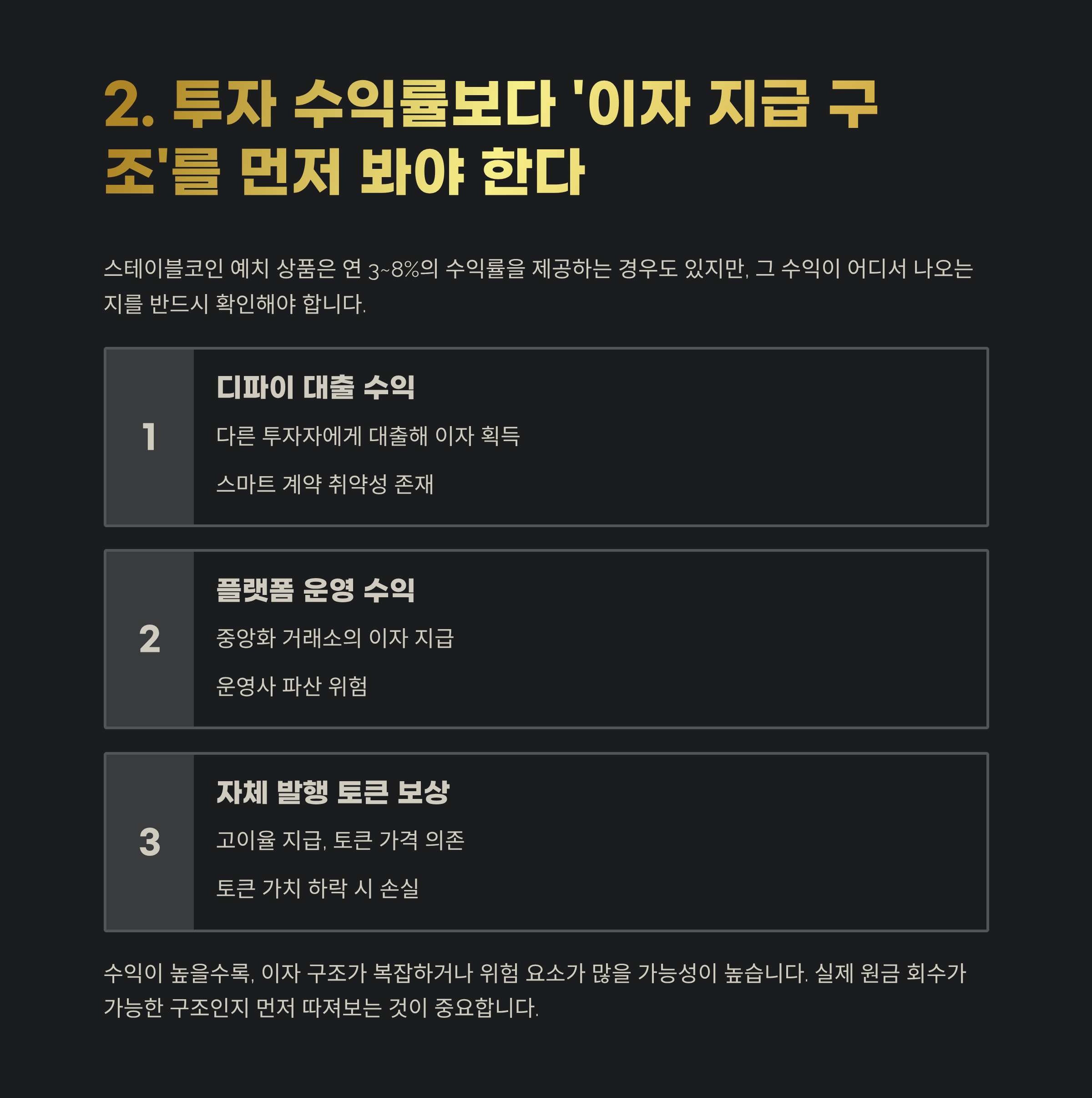 2. 투자 수익률보다 ‘이자 지급 구조’를 먼저 봐야 한다