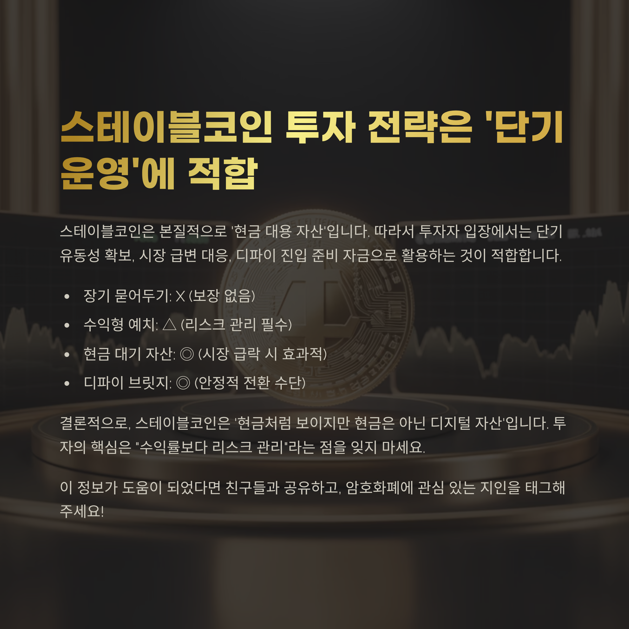 6. 스테이블코인 투자 전략은 ‘단기 운영’에 적합