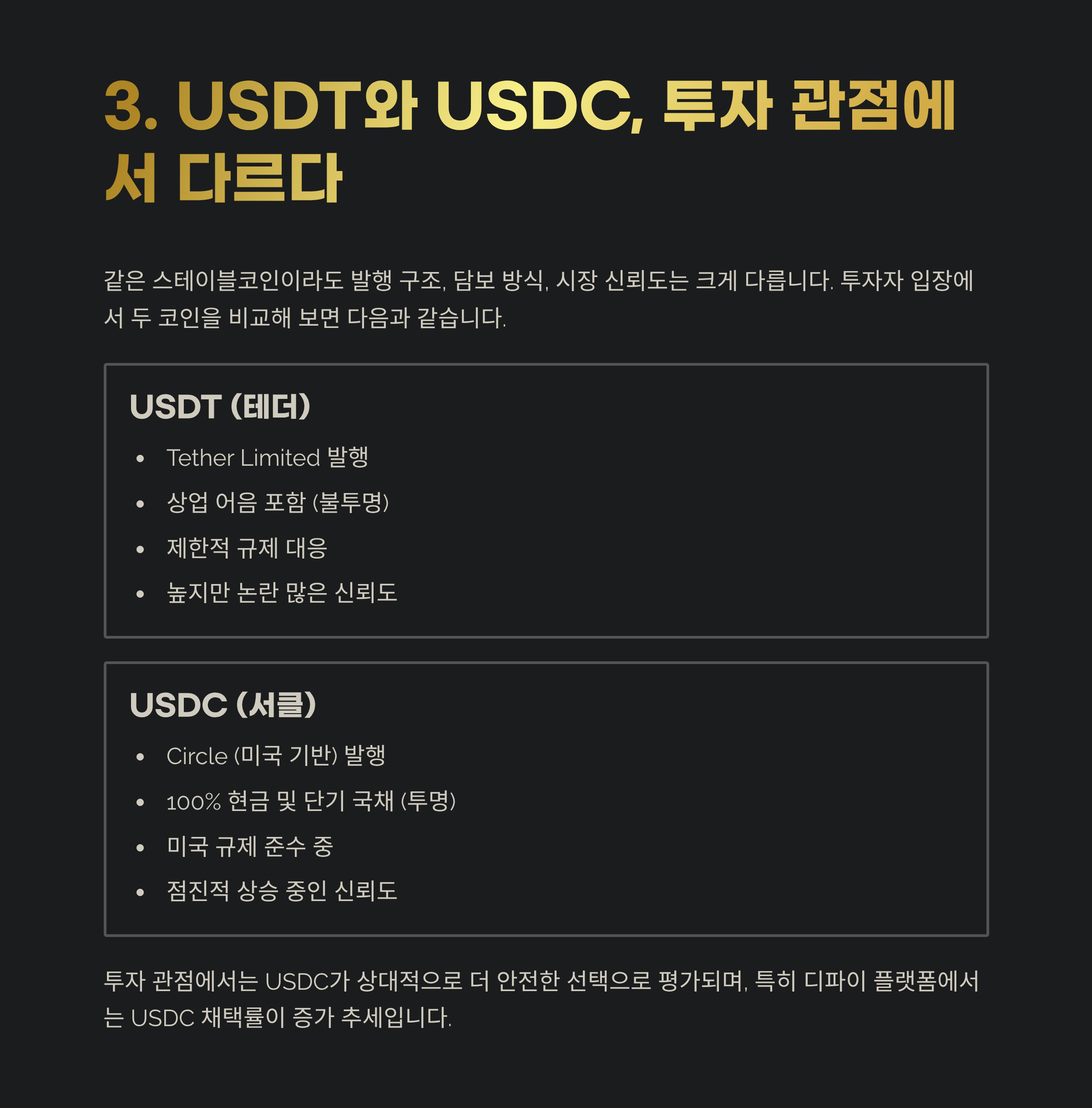 3. USDT와 USDC, 투자 관점에서 다르다