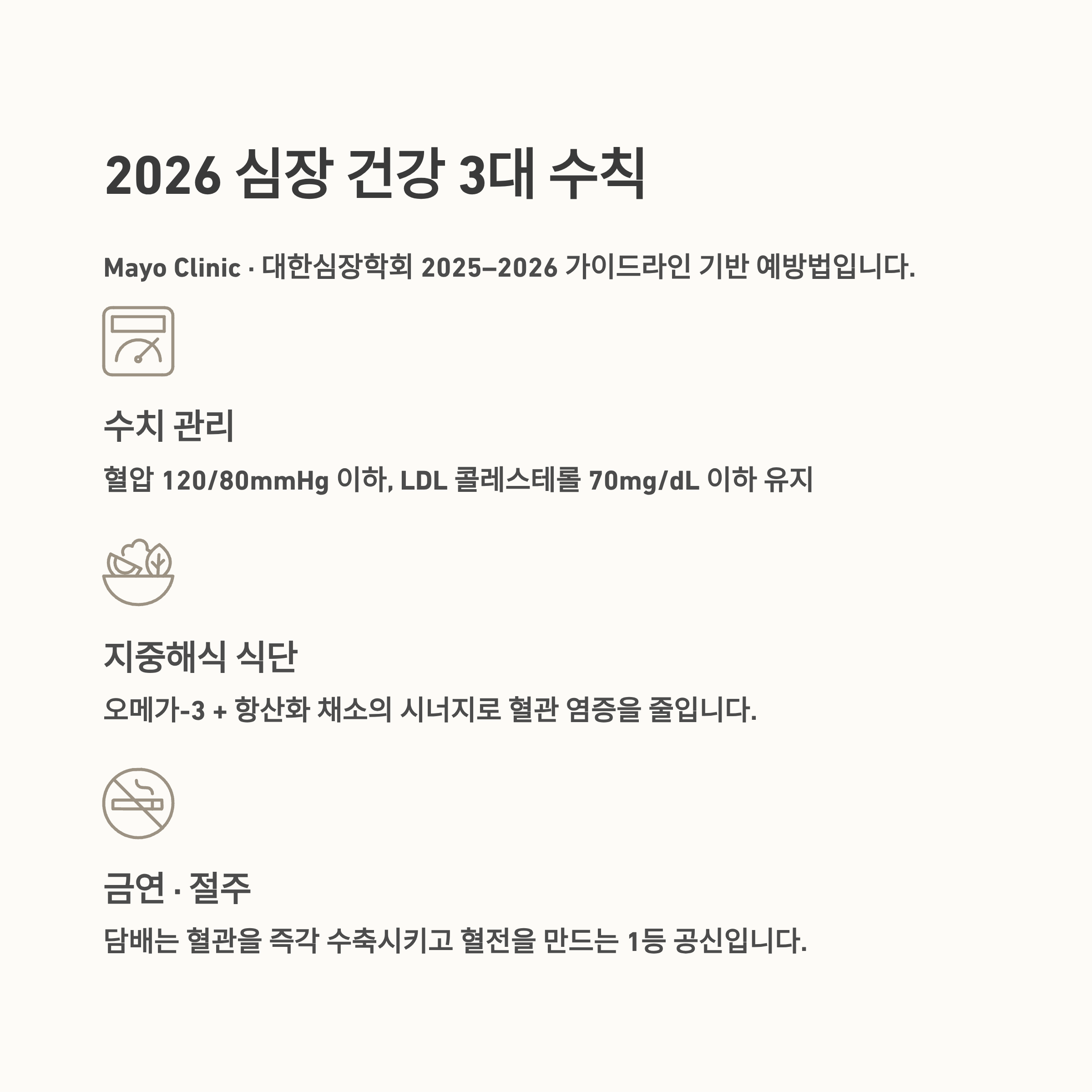 - 2026 최신 연구: 심혈관 건강을 지키는 3대 수칙