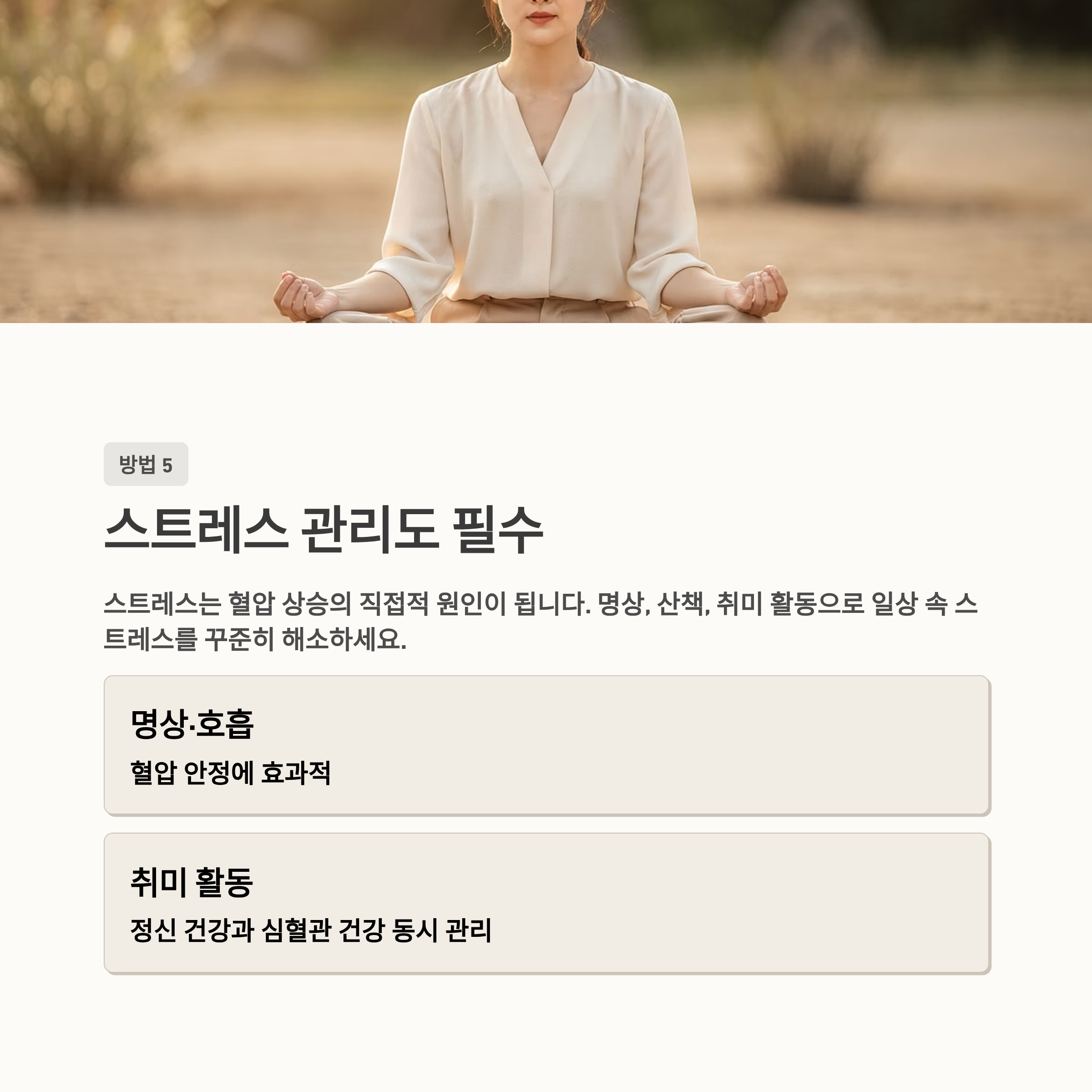 | 고혈압 | 저염식 및 꾸준한 운동 |