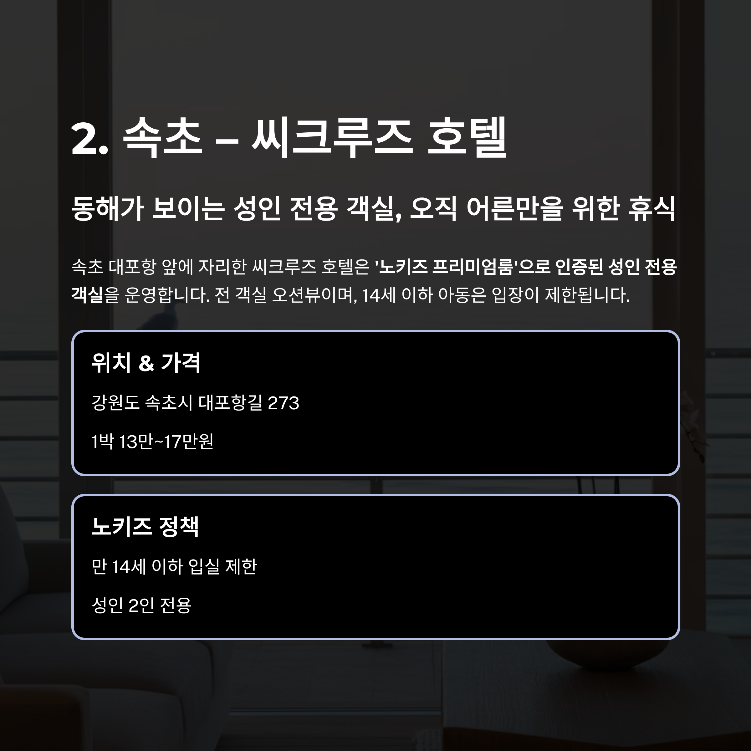 시끄러운 여행은 이제 그만! 전국 성인 전용 숙소에서 진짜 힐링을 즐기세요