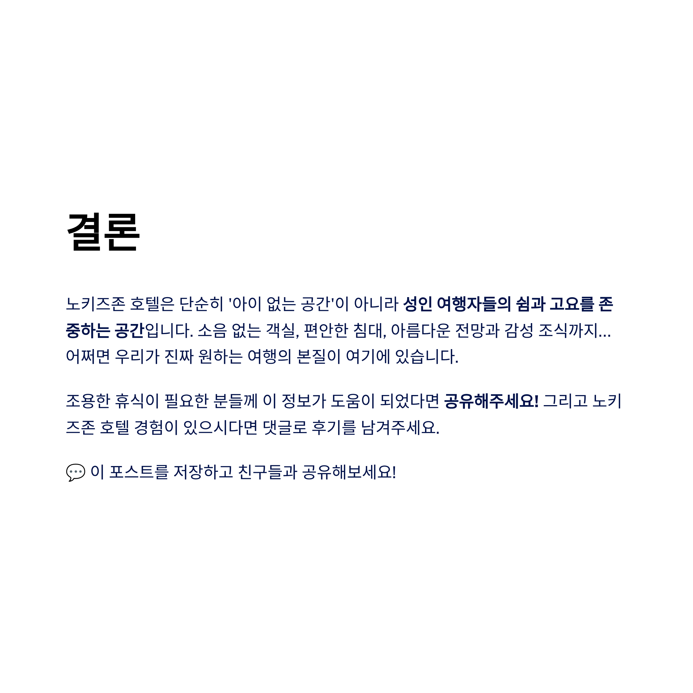 | 노키즈 운영 | 노키즈 프리미엄 객실 운영 (성인 2인 전용) |