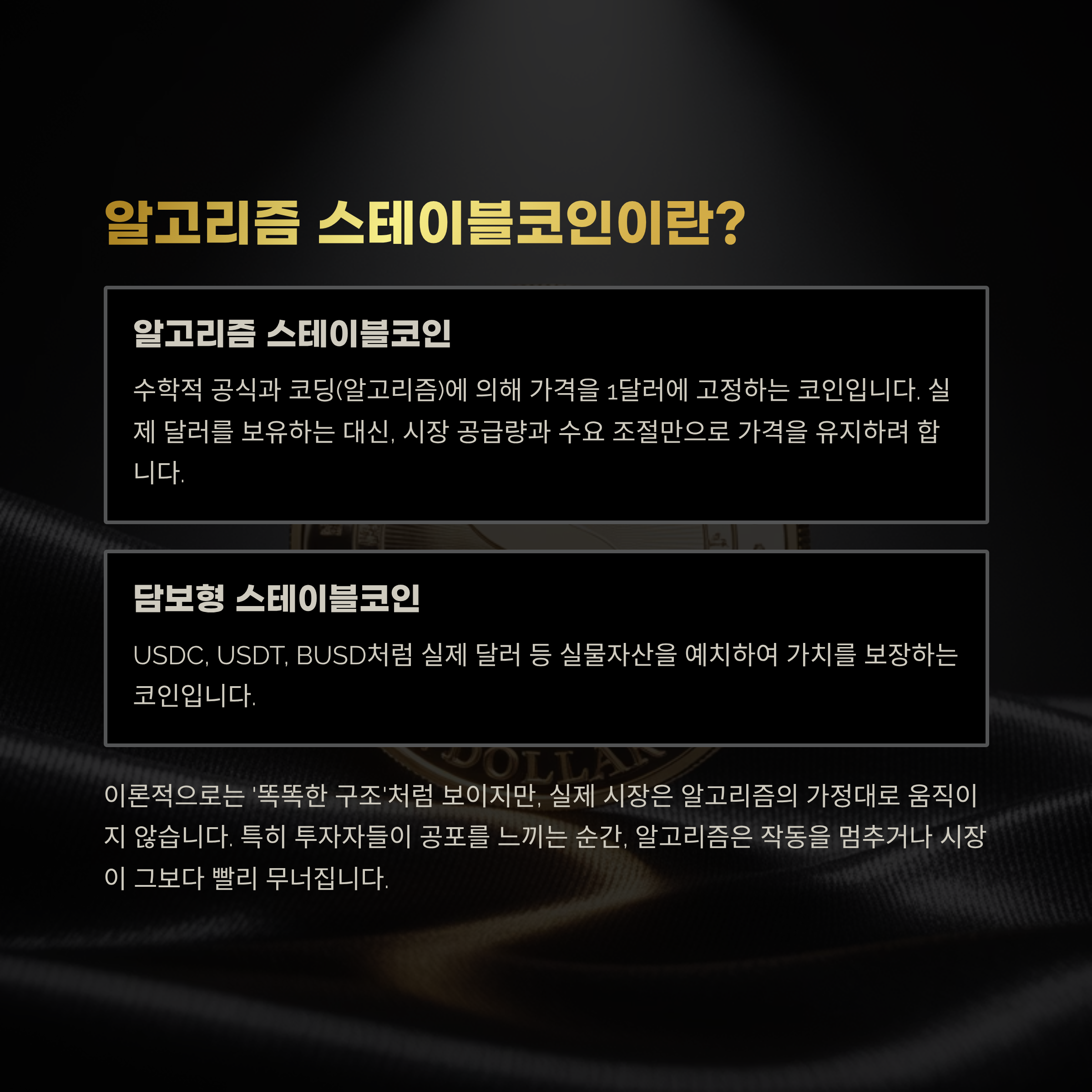 **“1달러와 연동된다고 해서 절대 안전한 것은 아니다”**입니다.