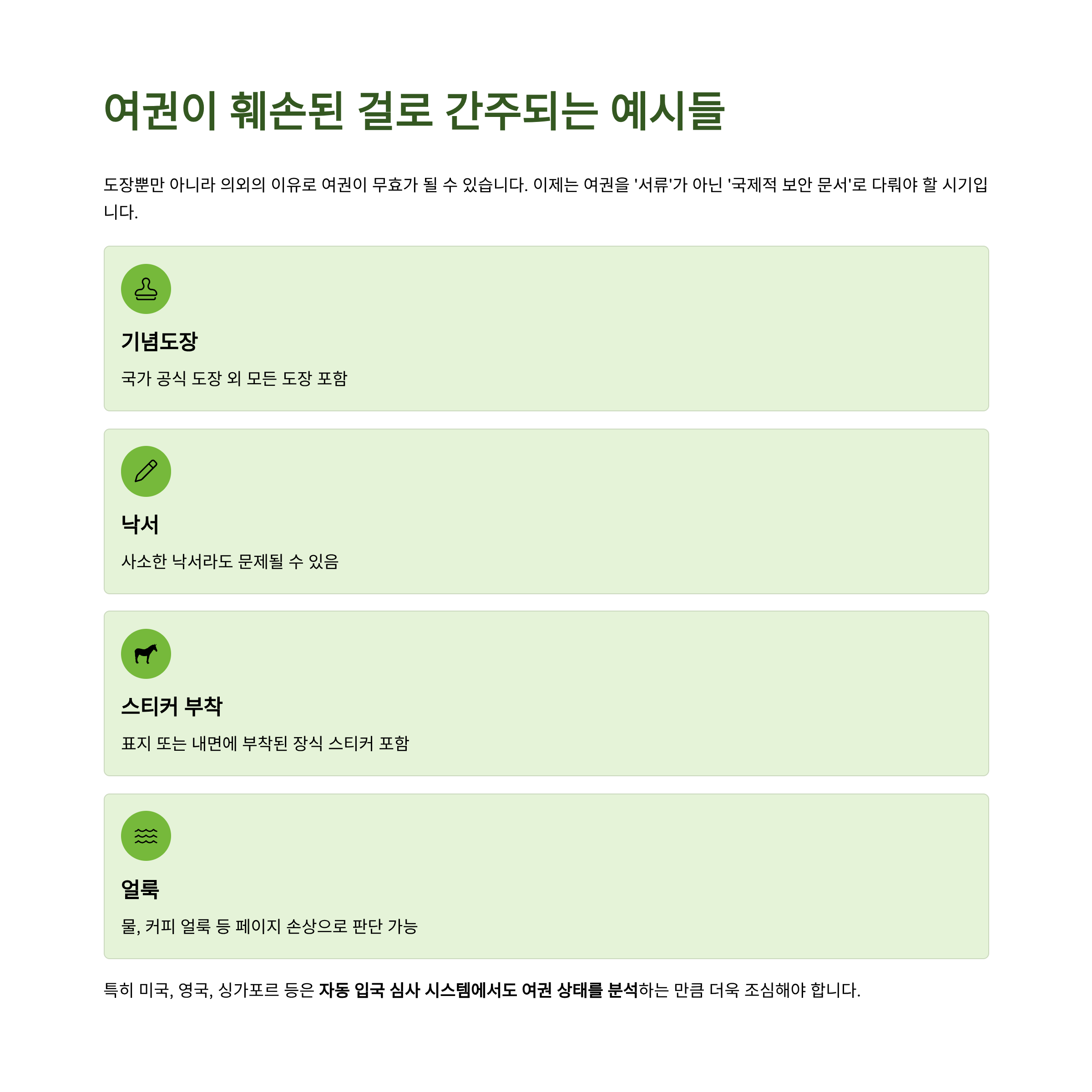 | 국가별 기준 | 일부 국가는 엄격히 여권 훼손으로 판단 |