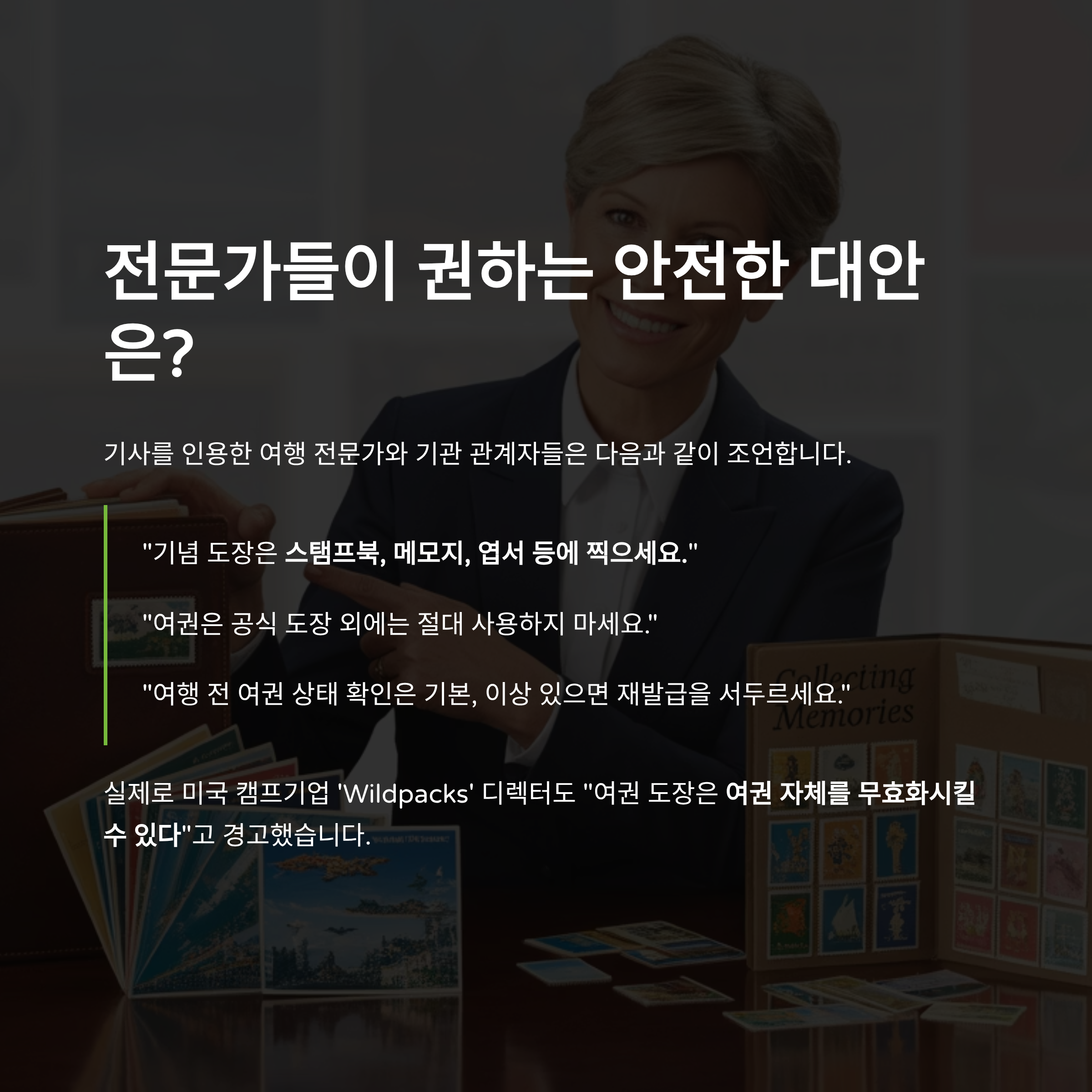 - “여권은 공식 도장 외에는 절대 사용하지 마세요.”