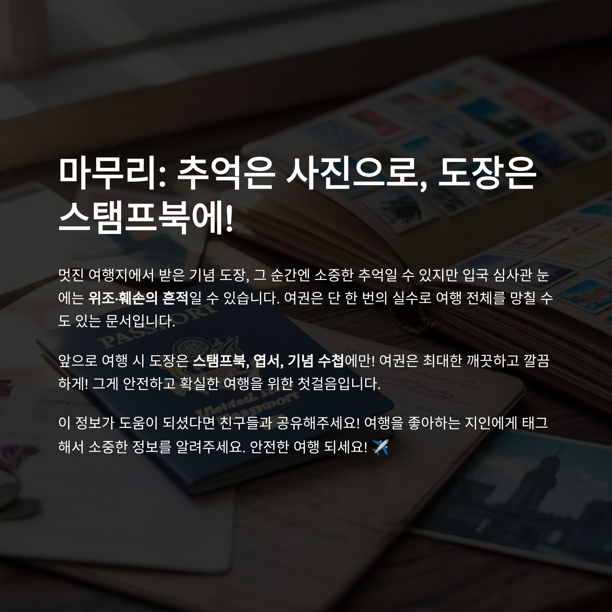 작은 도장 하나가 여행을 망칠 수도 있다면, 지금 확인하고 예방해야겠죠?