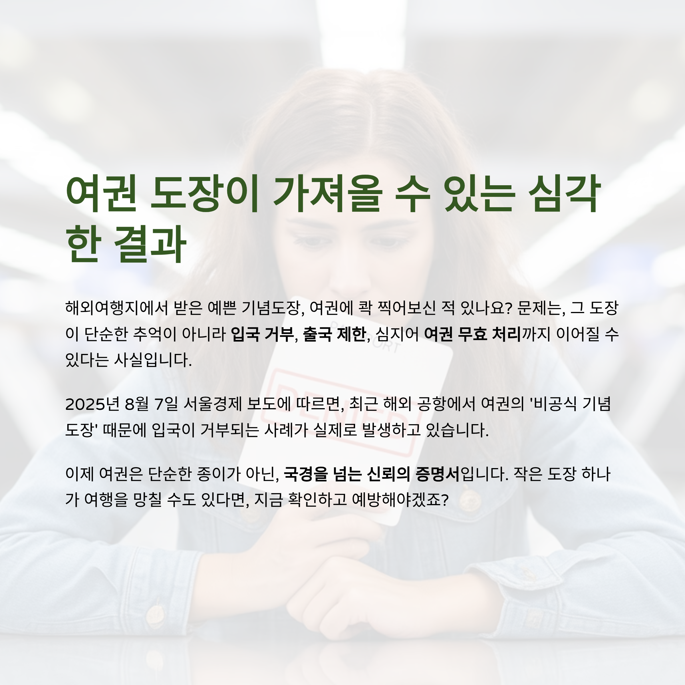 입국 거부, 출국 제한, 심지어 여권 무효 처리까지 이어질 수 있다는 사실입니다.