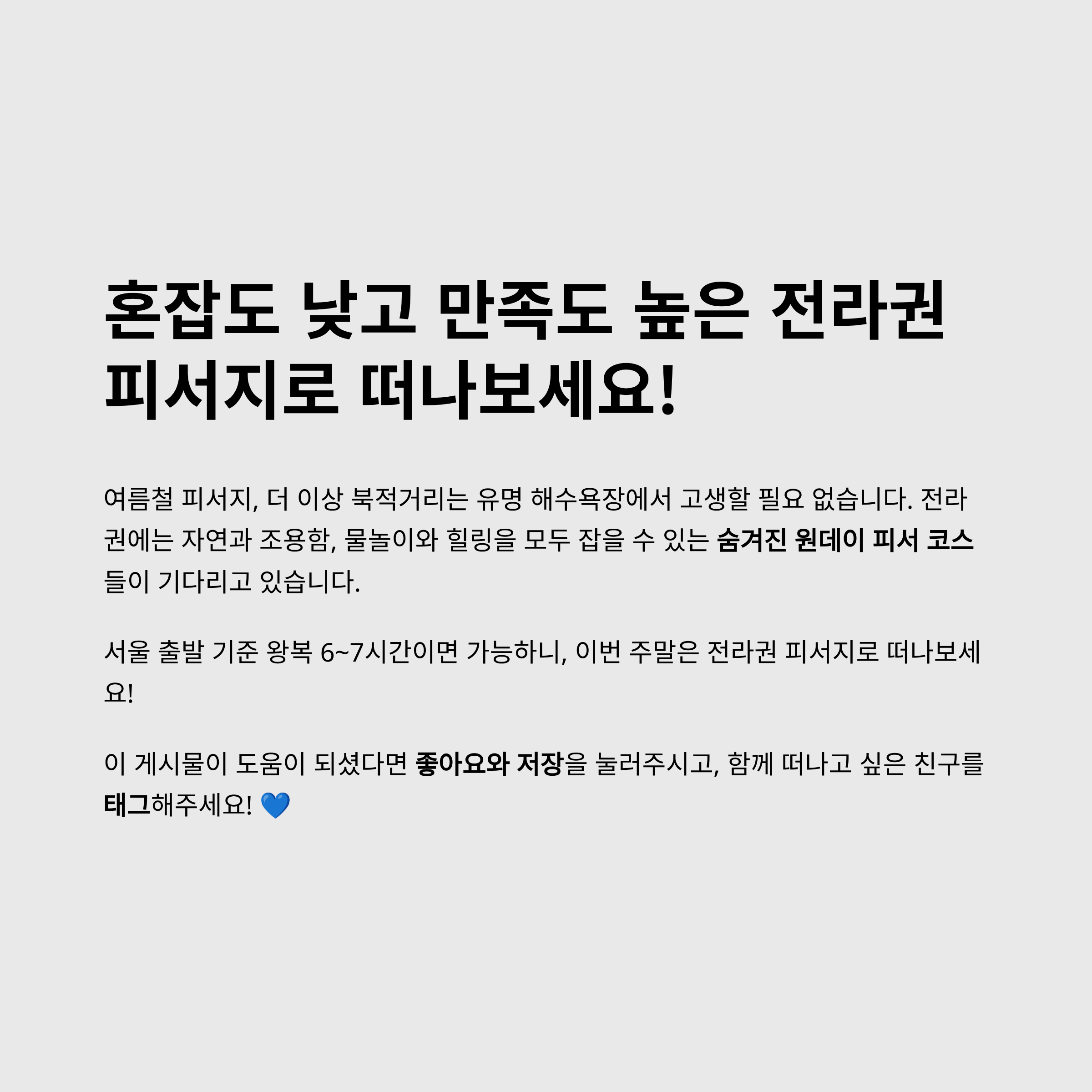 혼잡도 낮고 만족도 높은 전라권 피서지로 떠나보세요!