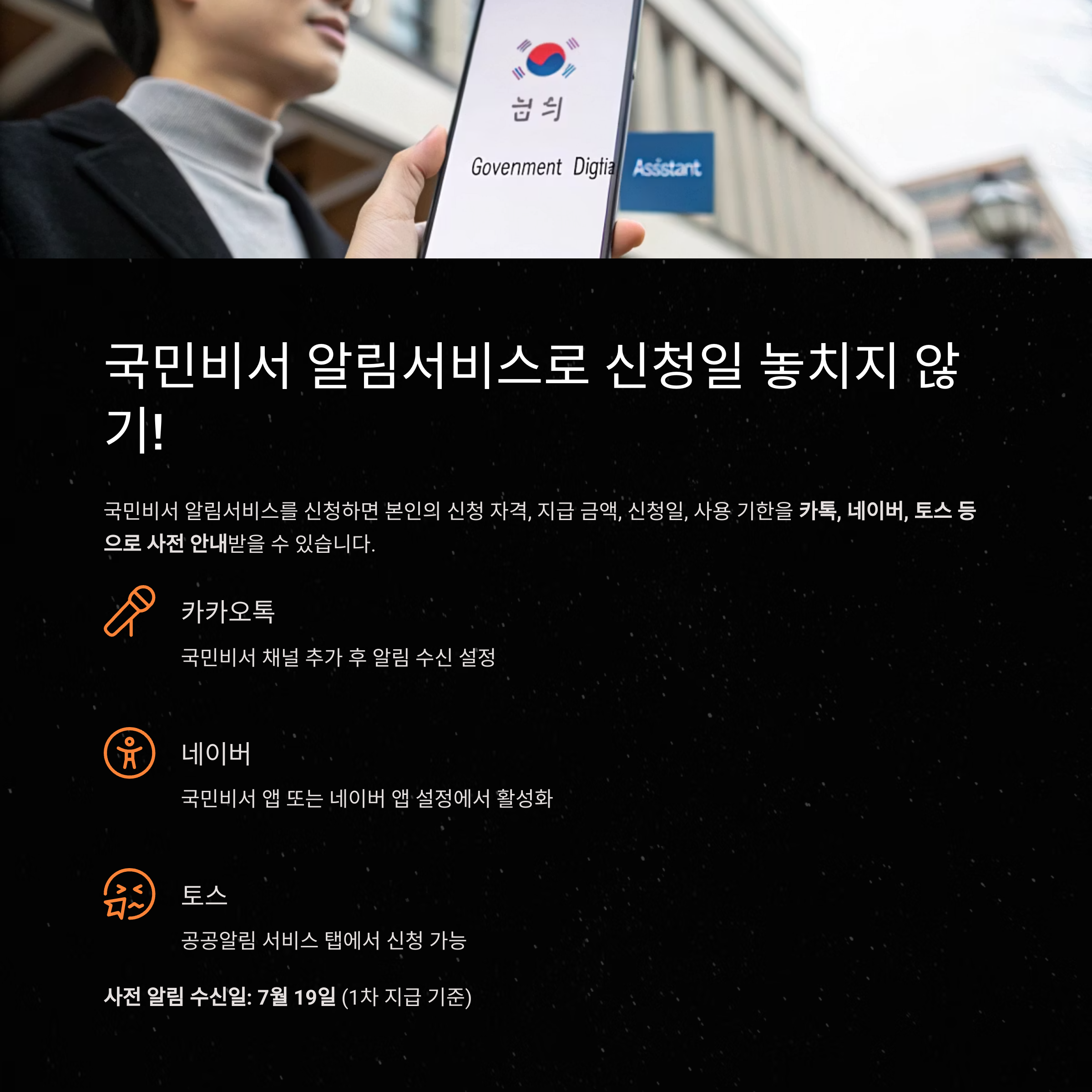 사전 알림 수신일: 7월 19일 (1차 지급 기준)