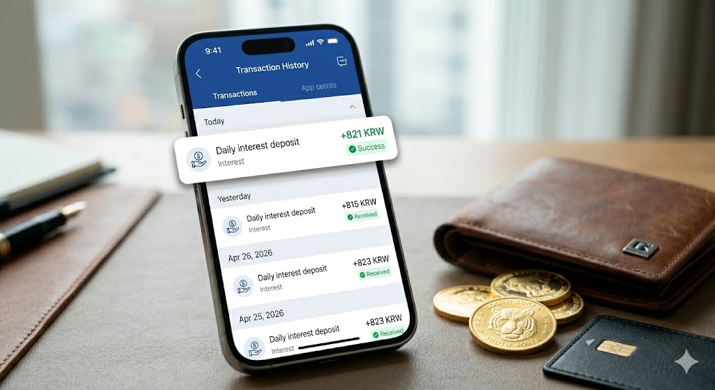 1. 하루 단위 정산: 내 잔액에 연 금리를 곱하고 365로 나눈 금액이 매일 쌓입니다.
