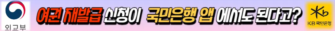 이제까지 지자체 여권민원실을 직접 방문하거나 온라인 정부24를 통해서만 신청할 수 있었던 여권 재발급 신청이 국민은행 모바일앱(KB스타뱅킹)에서도 가능하게 되었습니다.