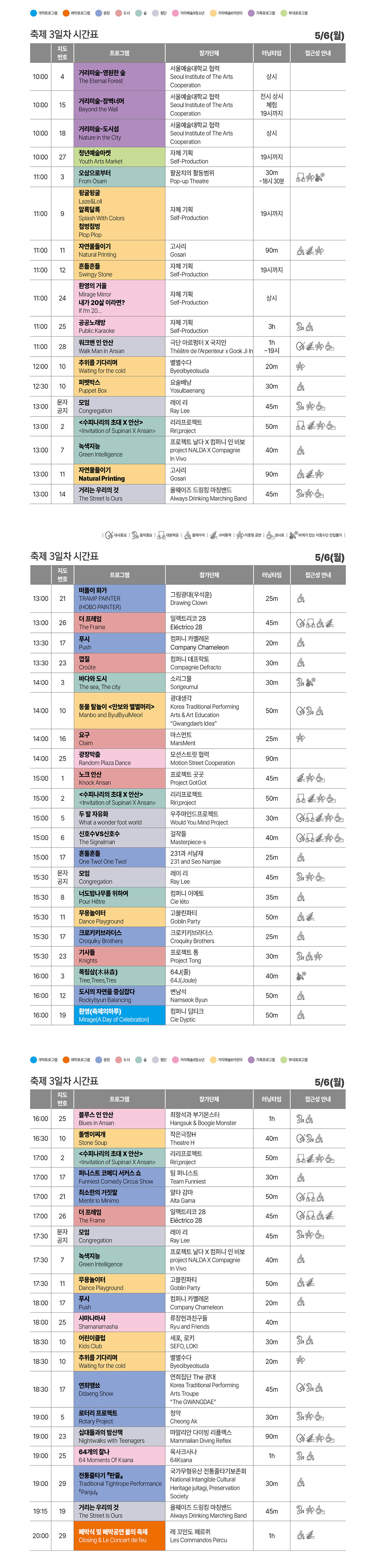 아래 축제 시간표를 참고하여 되도록 많은 프로그램을 함께 즐기길 바래요.