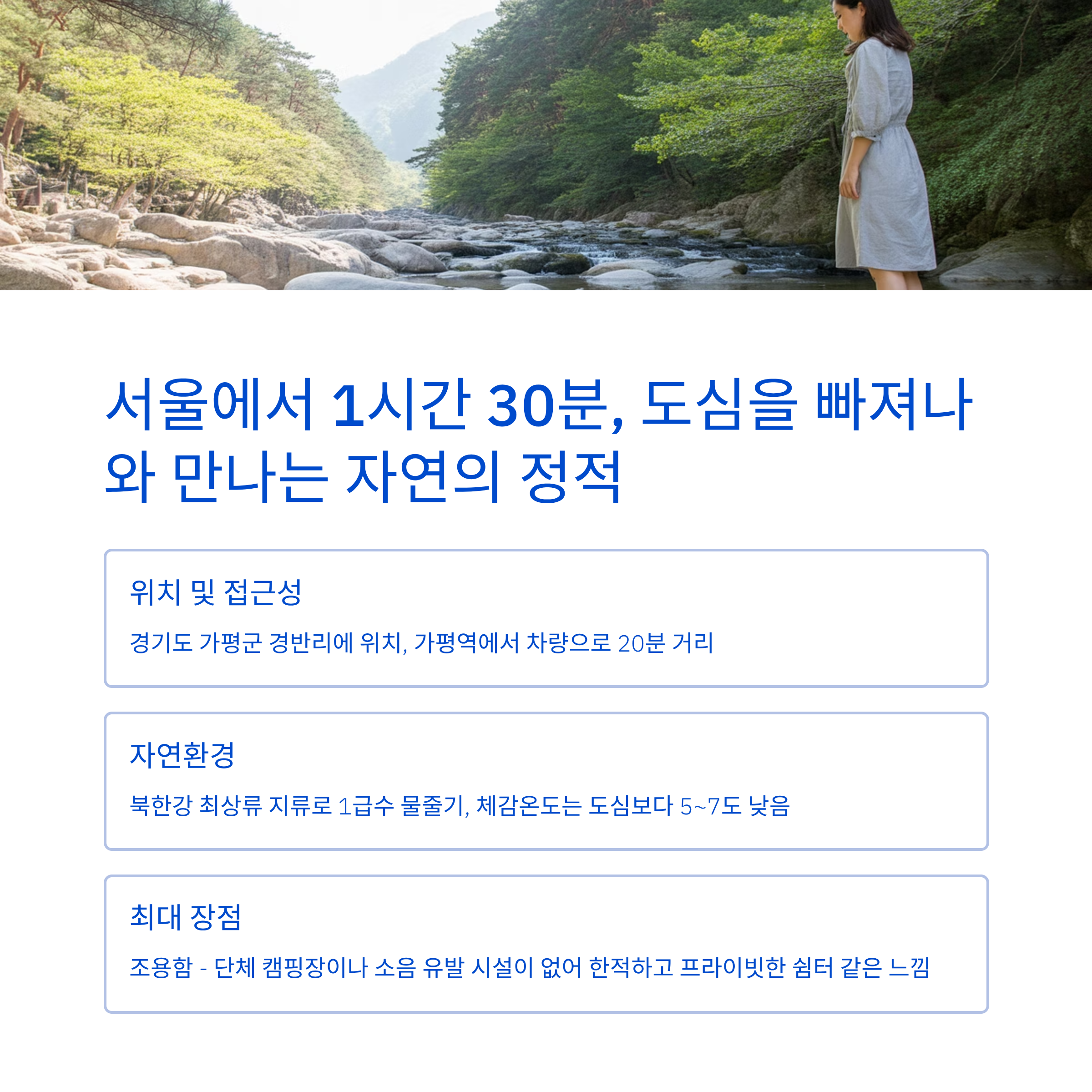 | 접근성 | “가평역에서 택시 20분이면 도착. 대중교통은 불편한 편.” |