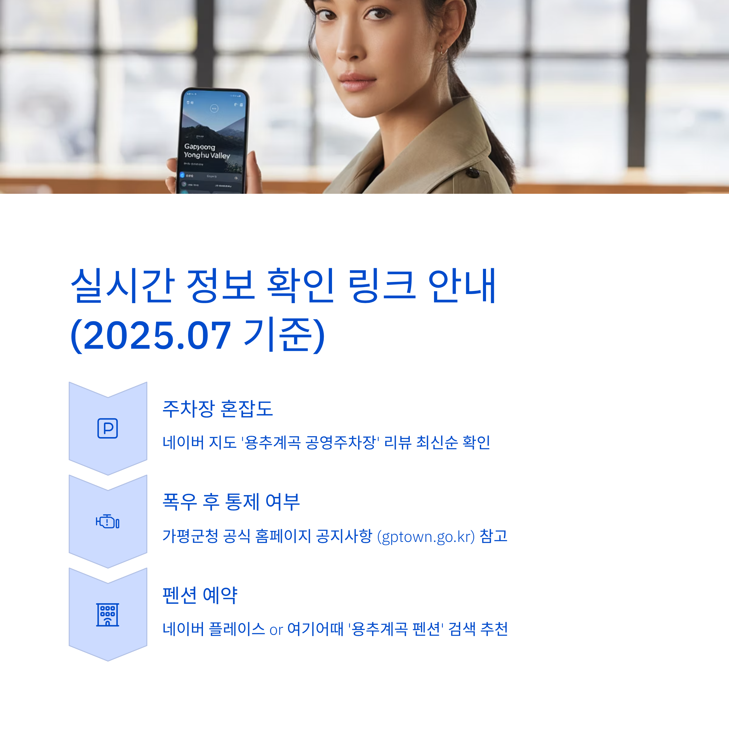 → 가평군청 홈페이지 또는 네이버 지도 리뷰로 실시간 상황 체크