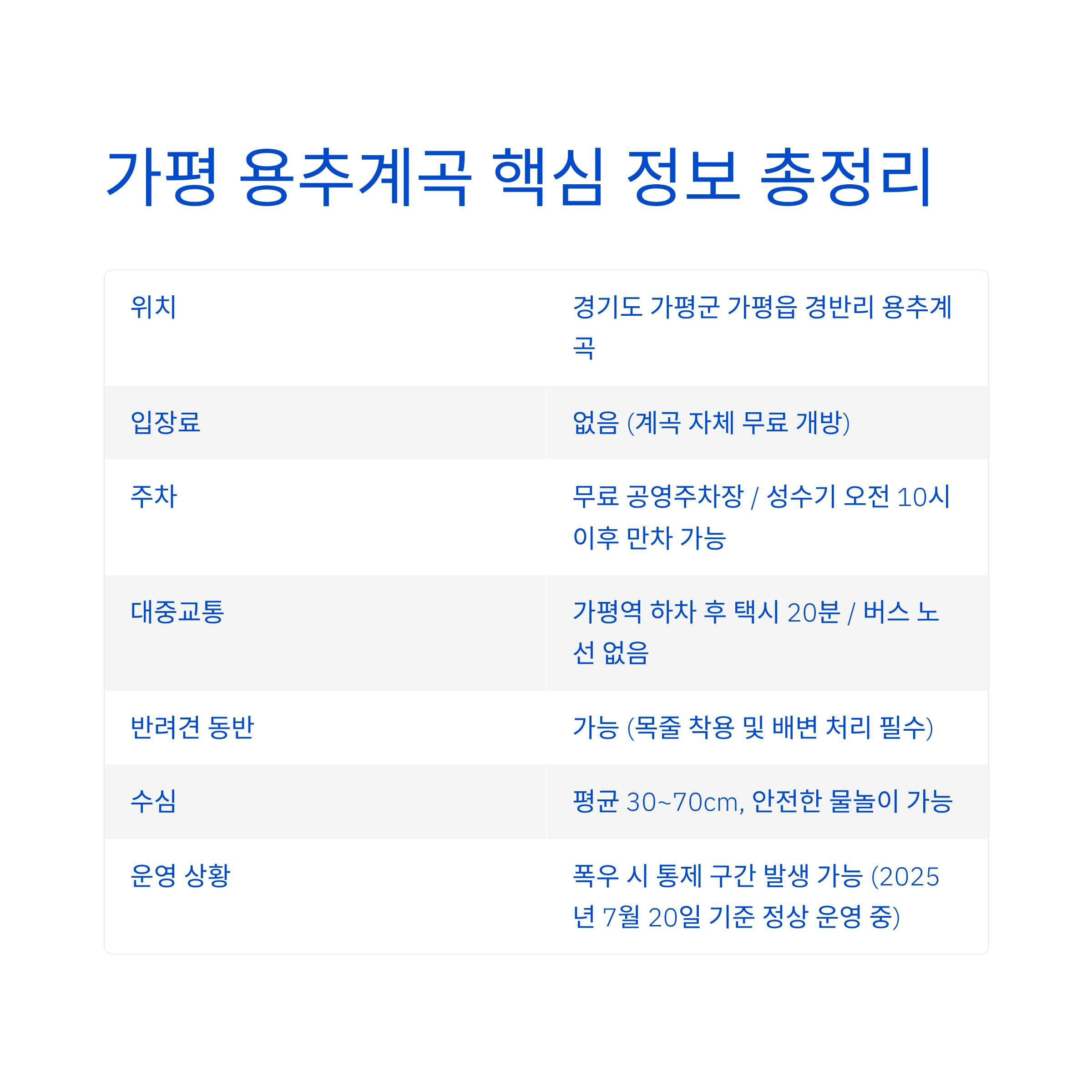 가평 용추계곡 핵심 정보 총정리