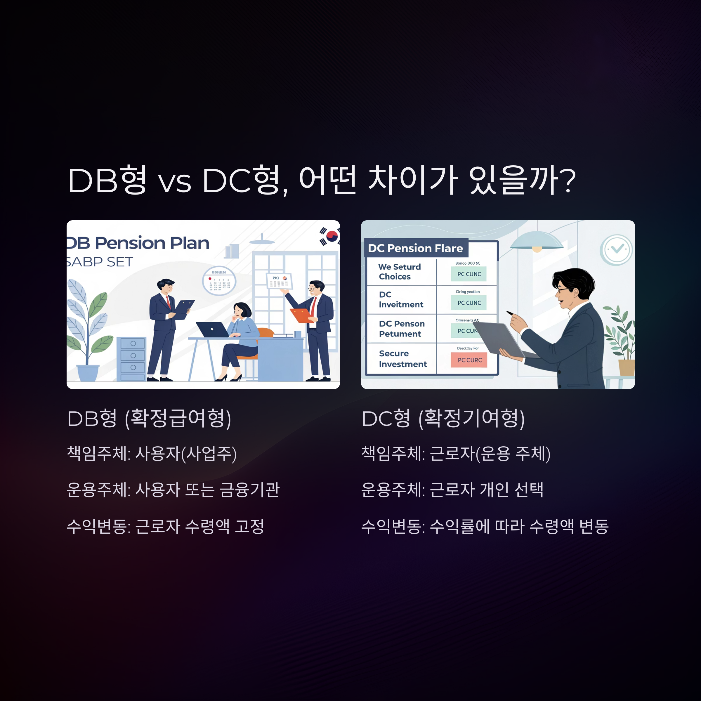 대표 유형은 DC형(확정기여형)과 DB형(확정급여형),