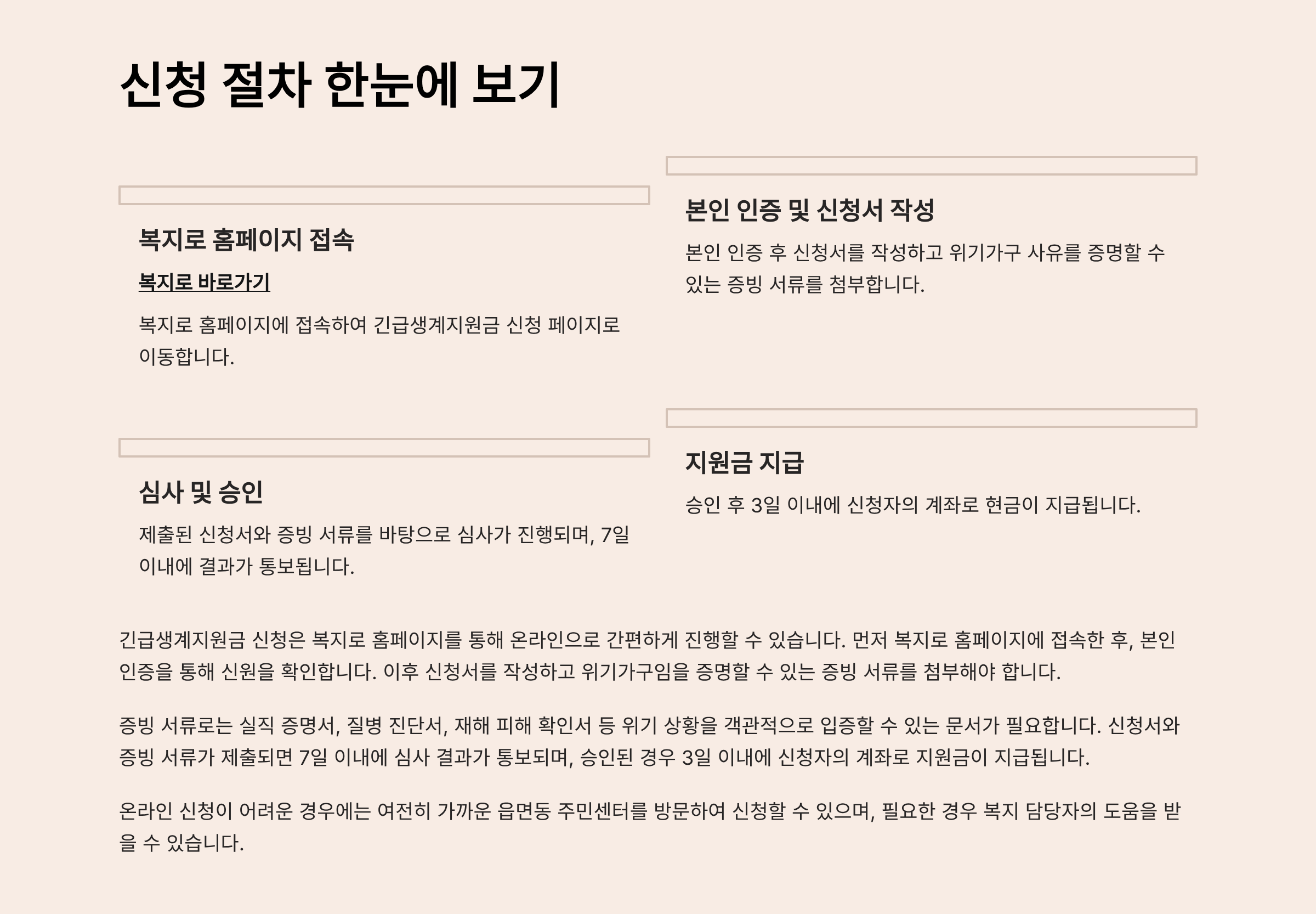 - “지병 치료비 부담 때문에 신청했는데 심사 빨라서 일주일 만에 지급.” – 62세 노인가구
