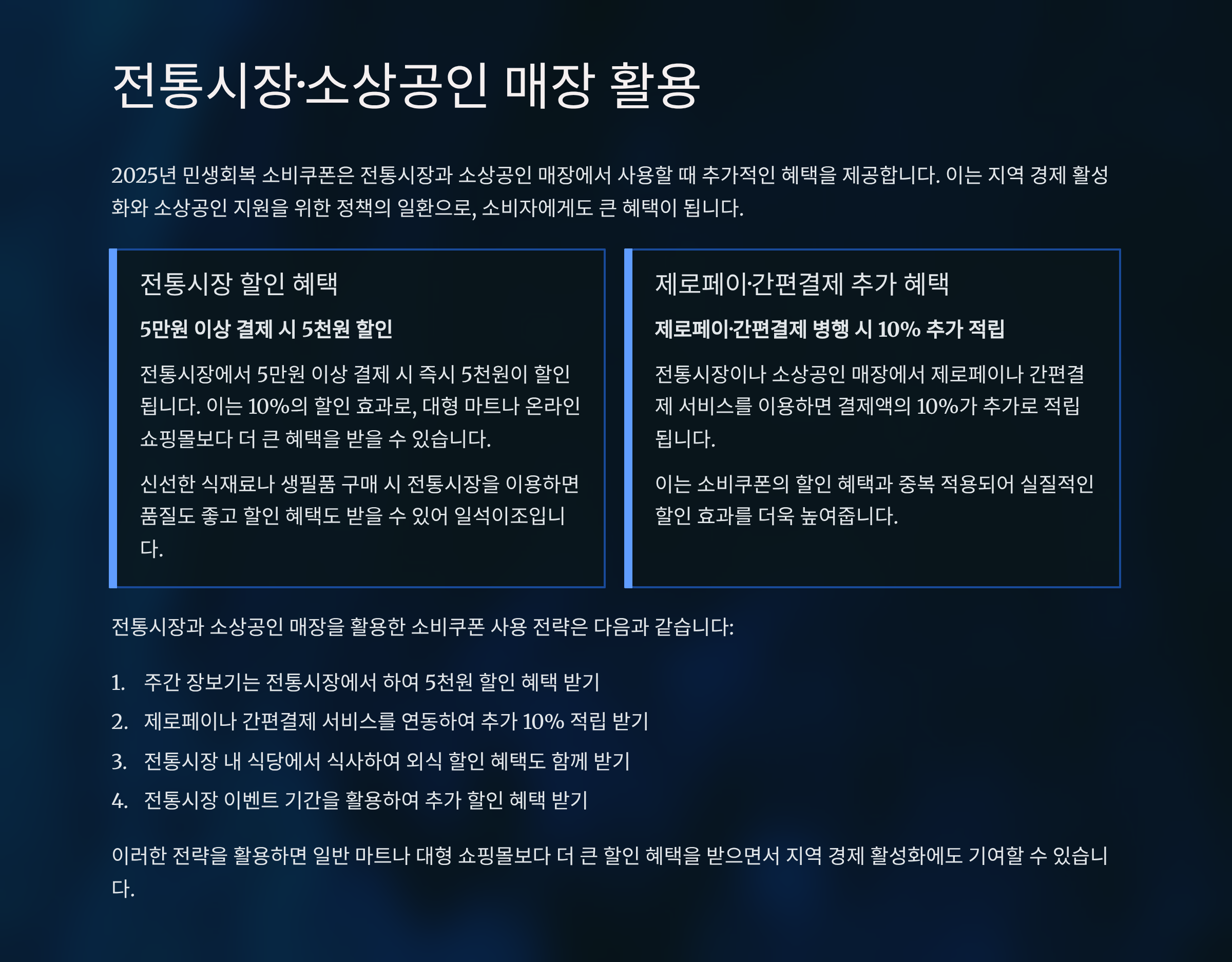 - 전통시장: 5만원 이상 결제 시 5천원 할인