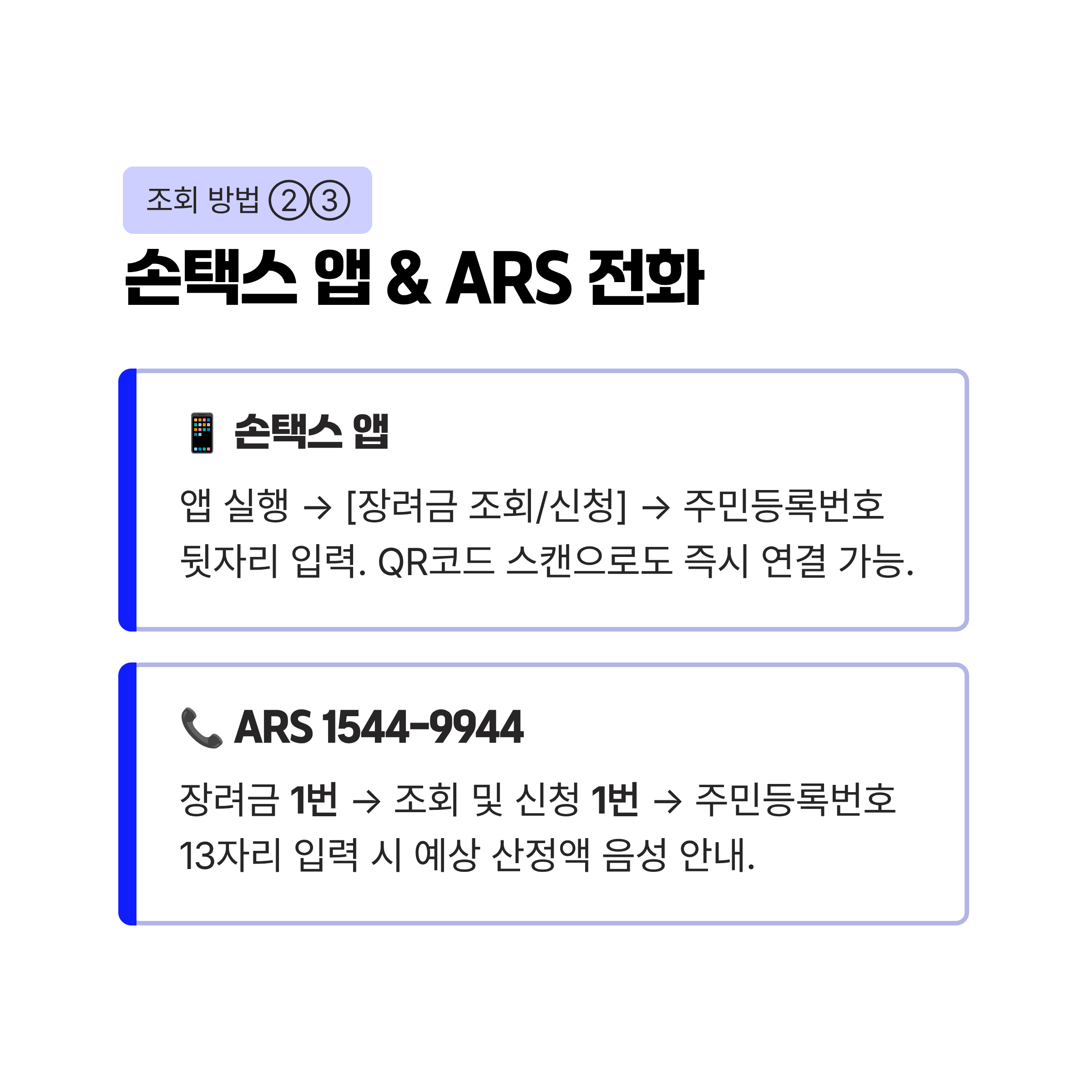 - 장려금 대상자 조회 방법 3가지 (홈택스, 손택스, ARS)