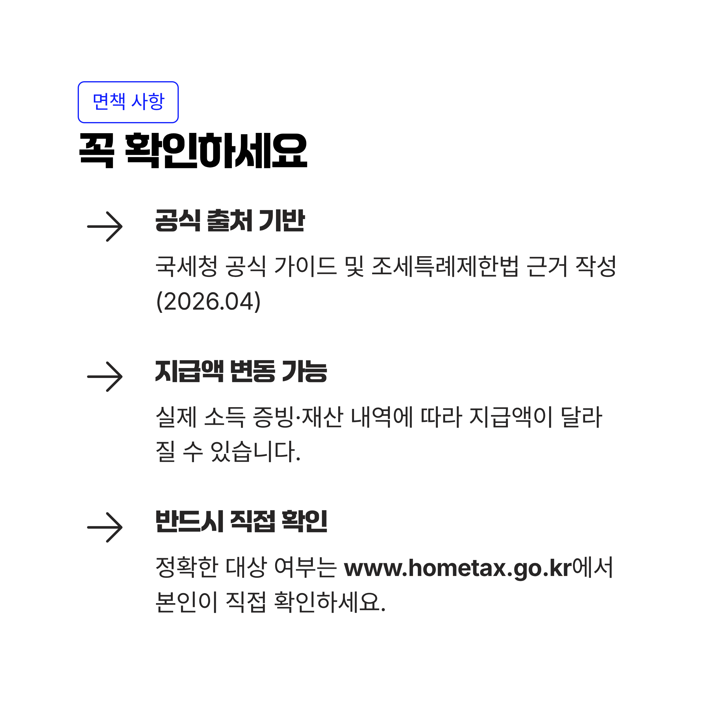 본 포스팅은 2026년 시행 중인 국세청 공식 가이드와 조세특례제한법을 근거로 작성되었습니다.