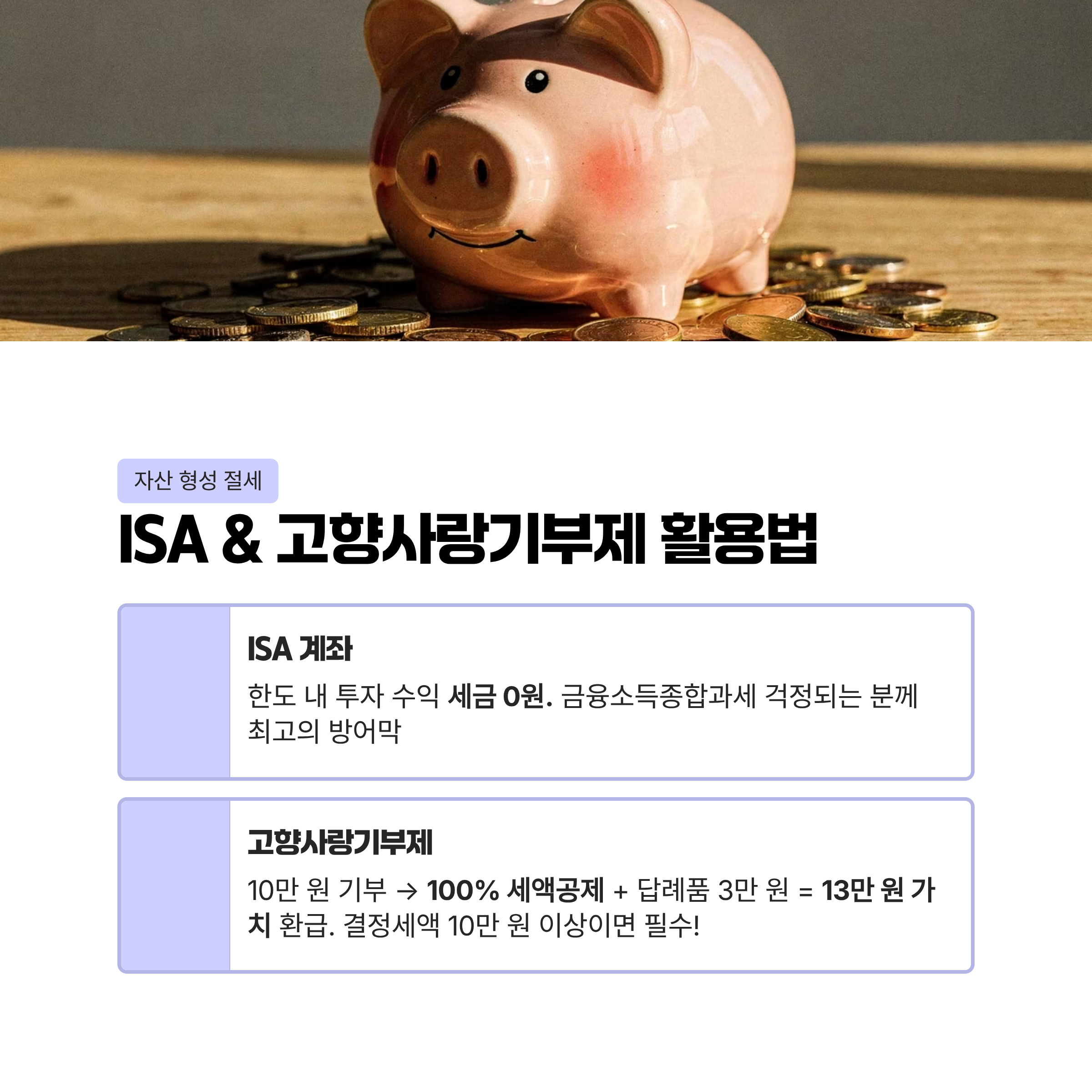 - ISA 계좌와 고향사랑기부제: 자산 형성과 절세를 동시에