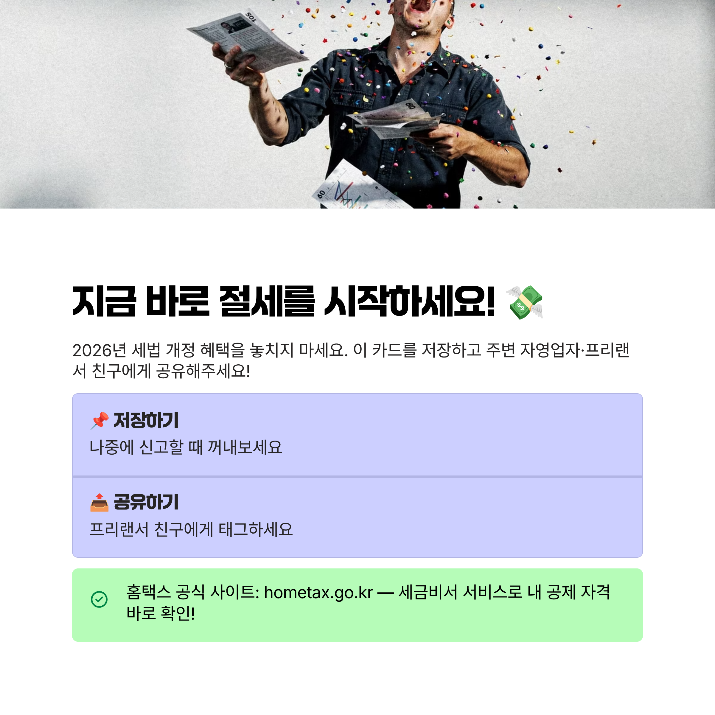 #종합소득세 #절세꿀팁 #2026세법개정 #종소세신고 #창업중소기업세액감면 #노란우산공제 #ISA계좌비과세 #고향사랑기부제 #세액공제 #소득공제 #프리랜서절세 #자영업자세금 #연금저축IRP #청년창업세액감면 #교육비세액공제 #월세세액공제 #홈택스사용법 #세테크 #5월종합소득세 #세무관리전략 #재테크정보 #세금환급받는법 #개인사업자절세 #소상공인지원 #디지털바우처공제