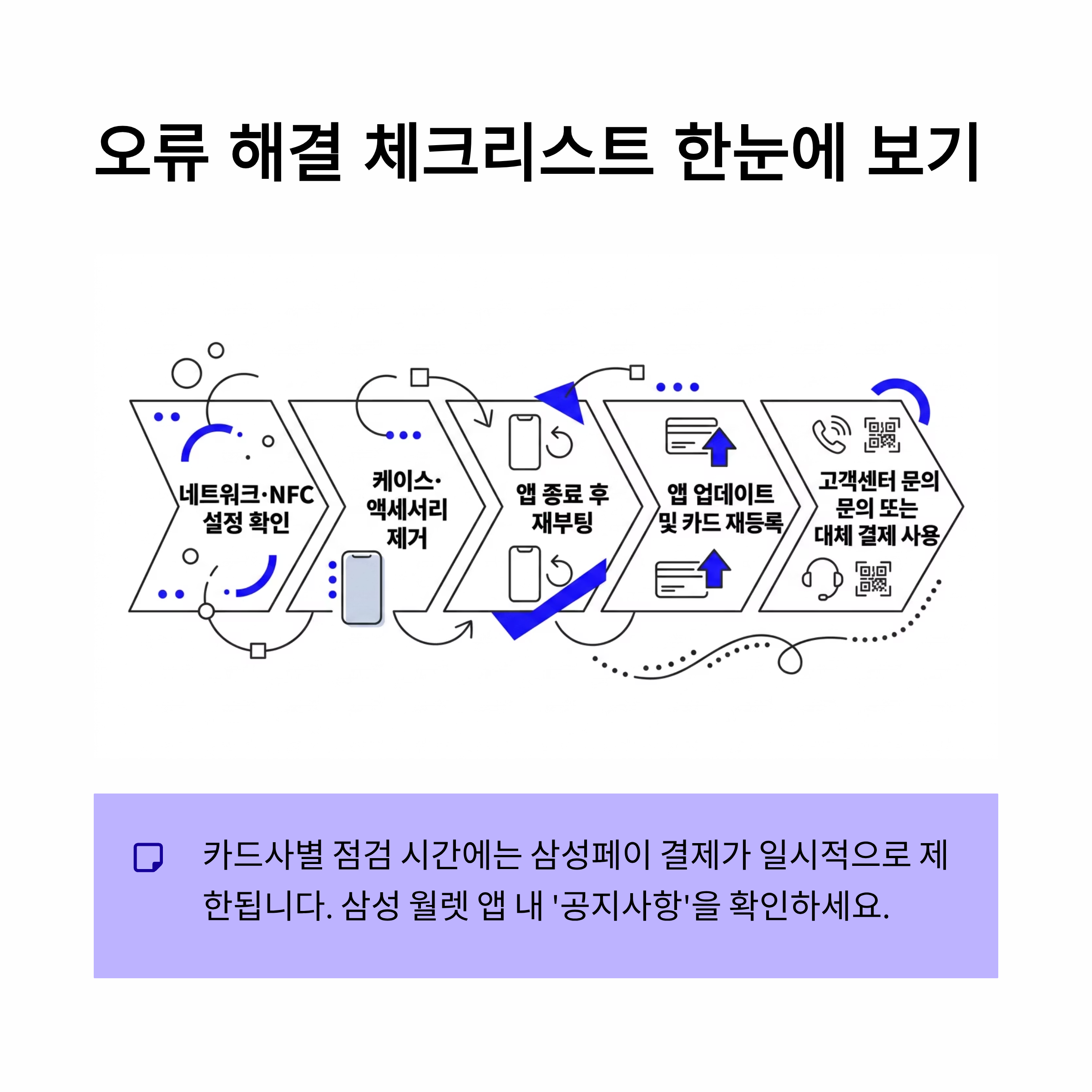 - 삼성전자 서비스센터 방문: 전국 센터에서 NFC/MST 모듈 점검을 받을 수 있습니다.