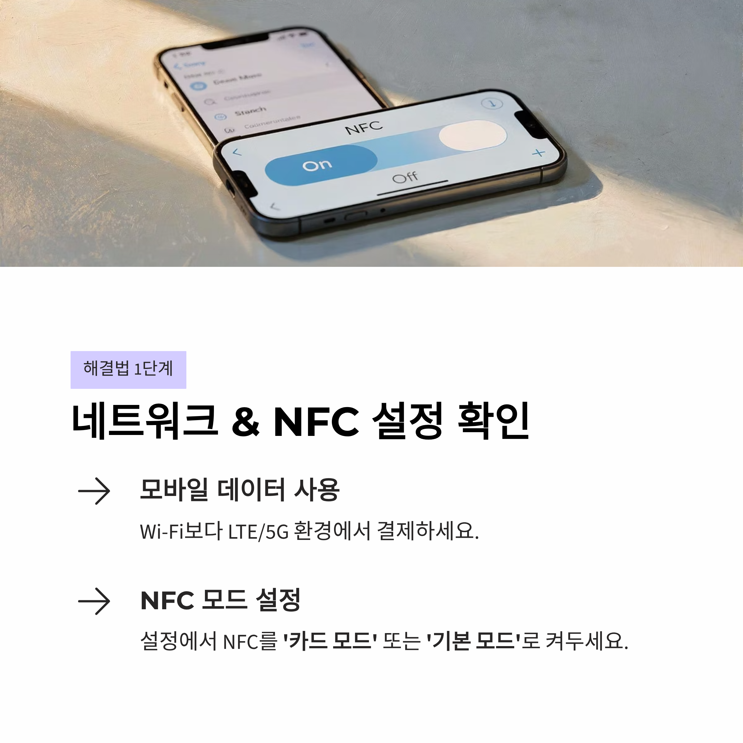 1단계: 네트워크 및 NFC 설정 확인