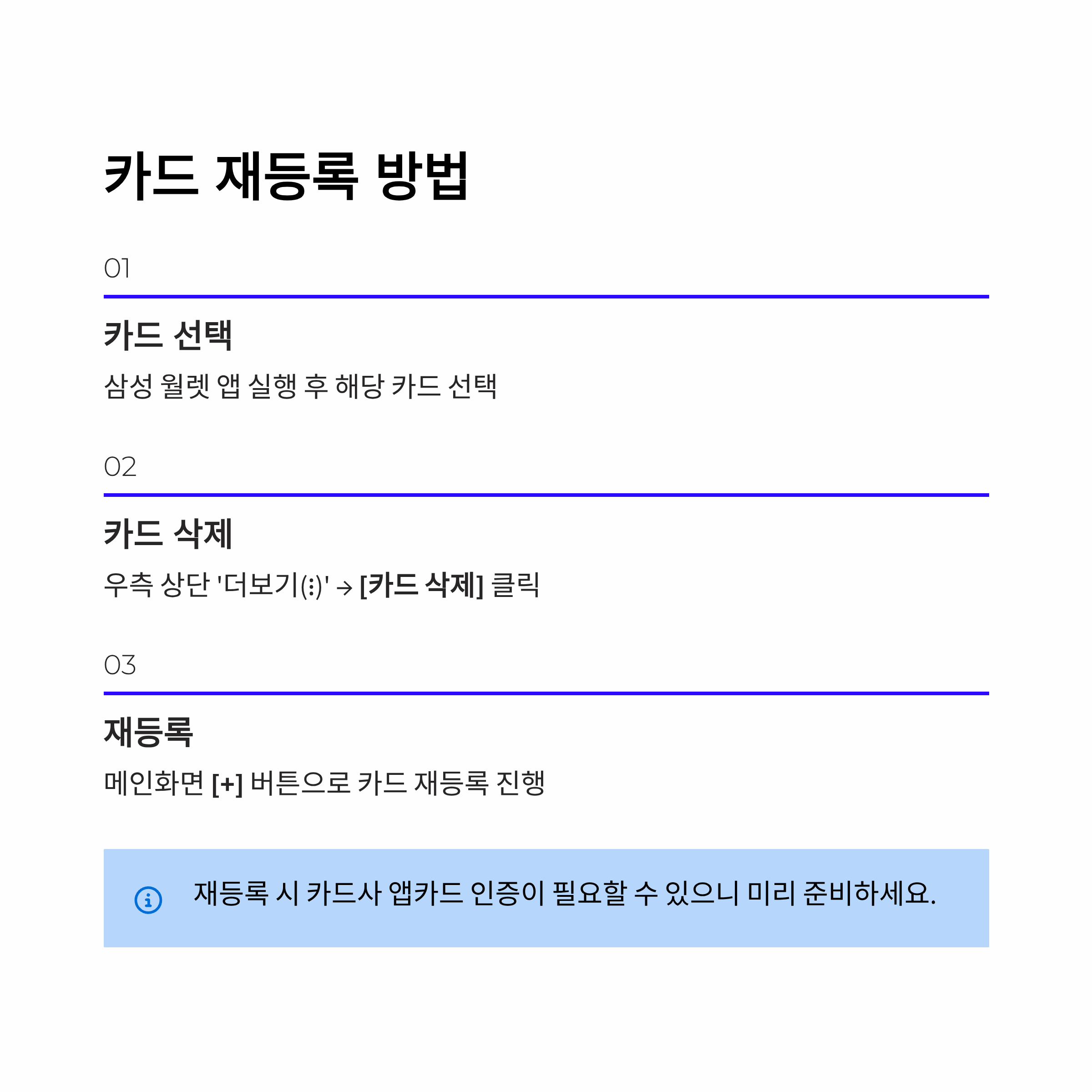 카드 삭제 후 재등록 방법