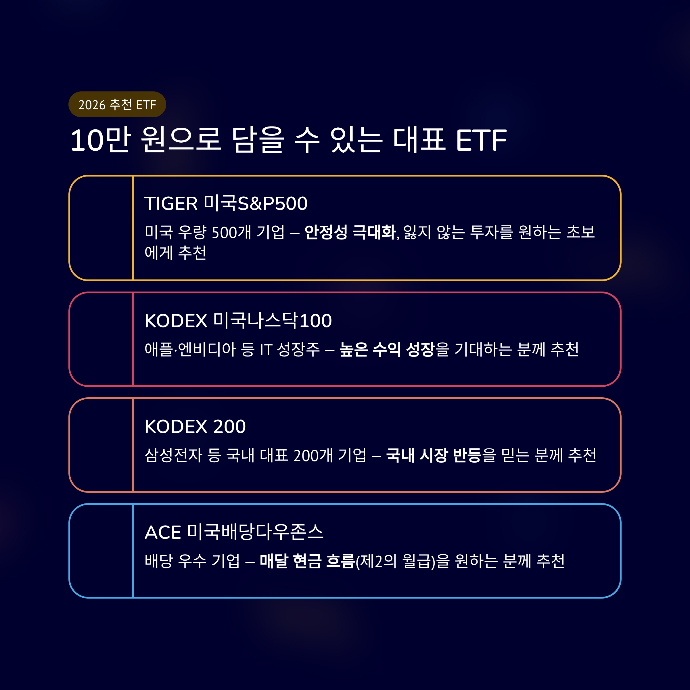 - 10만원으로 시작하는 2026년 대표 ETF 추천 리스트