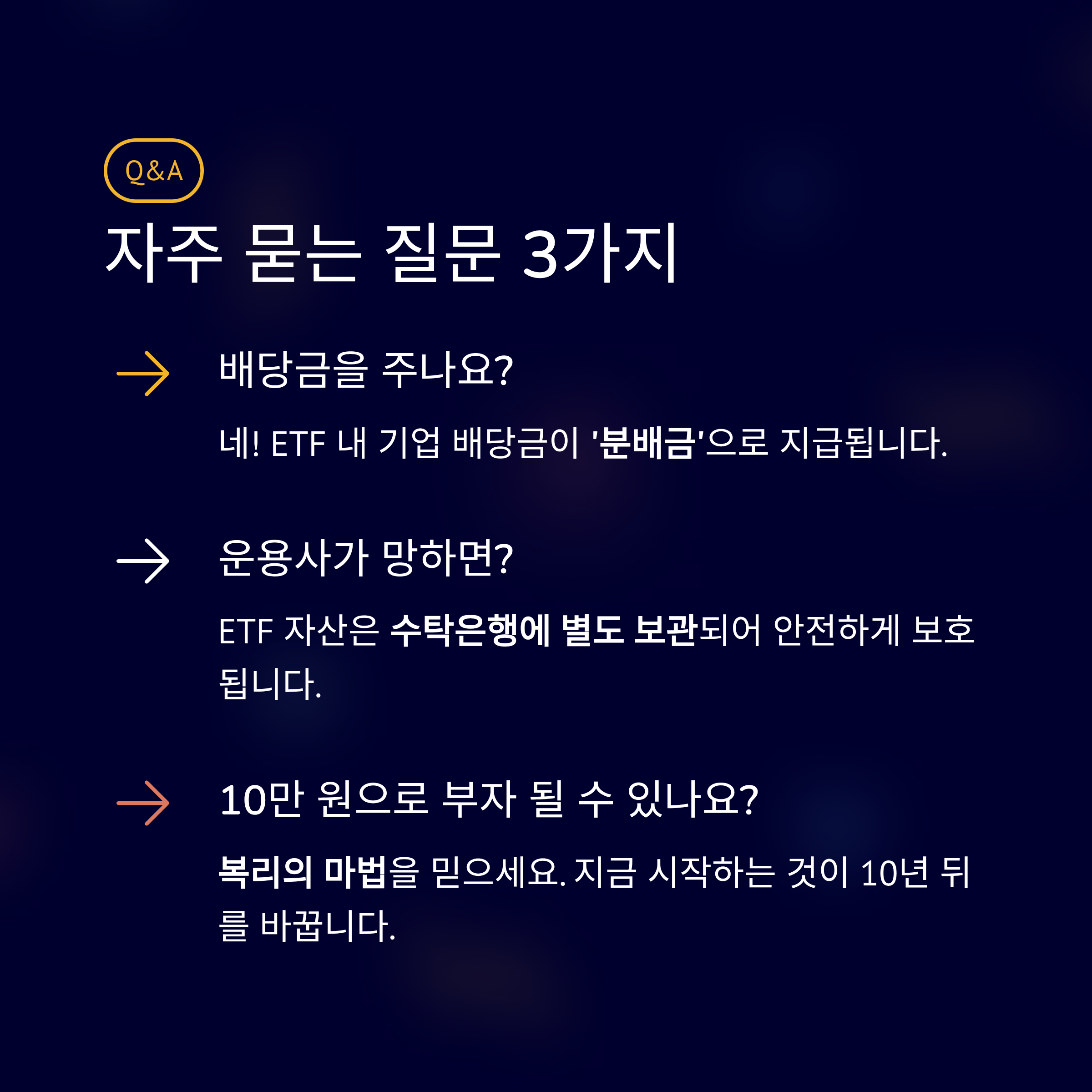 A. ETF 자산은 수탁은행에 안전하게 별도로 보관됩니다. 운용사가 망해도 여러분의 자산은 안전하게 보호되니 걱정하지 마세요.