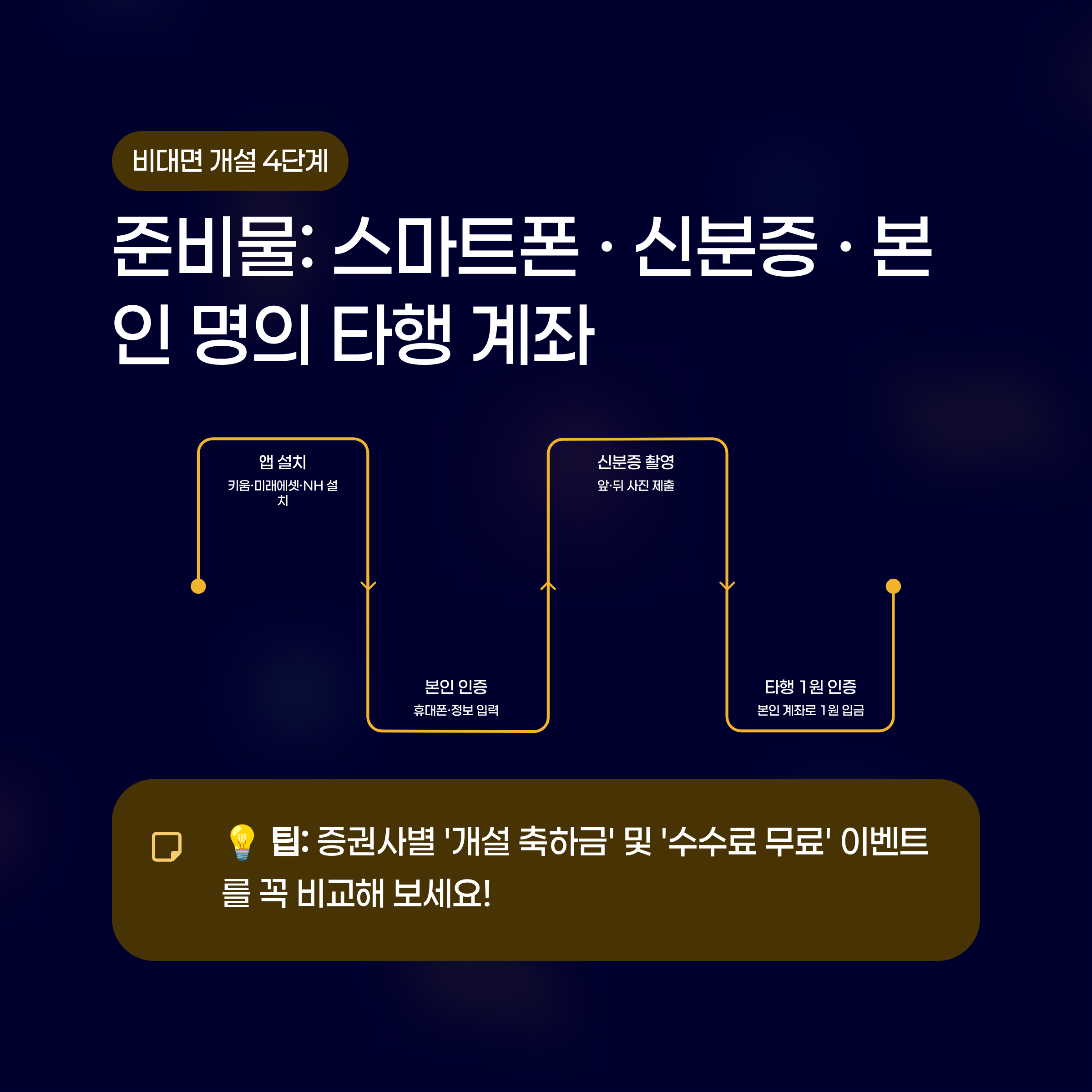 💡 팁: 최근 증권사별로 '개설 축하금'이나 '수수료 무료' 이벤트를 진행하는 경우가 많으니 혜택을 꼭 비교해 보세요.
